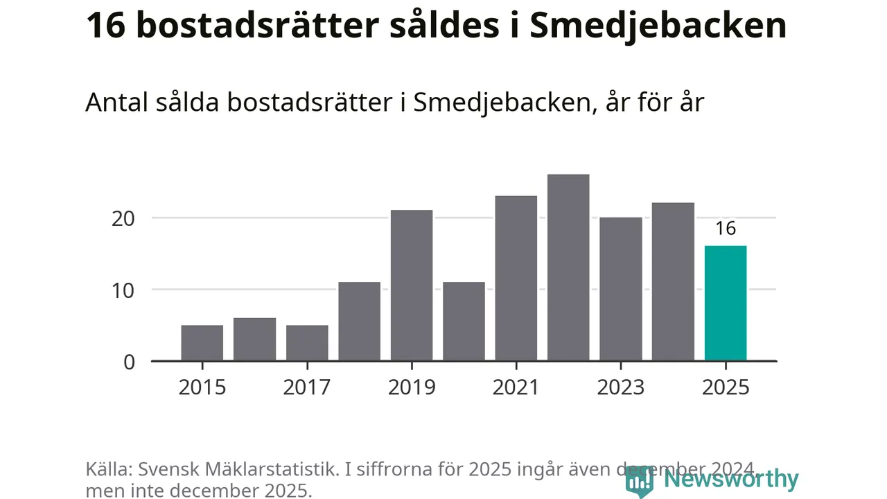 Det visar årsstatistik från Svensk Mäklarstatistik som Newsworthy har sammanställt.