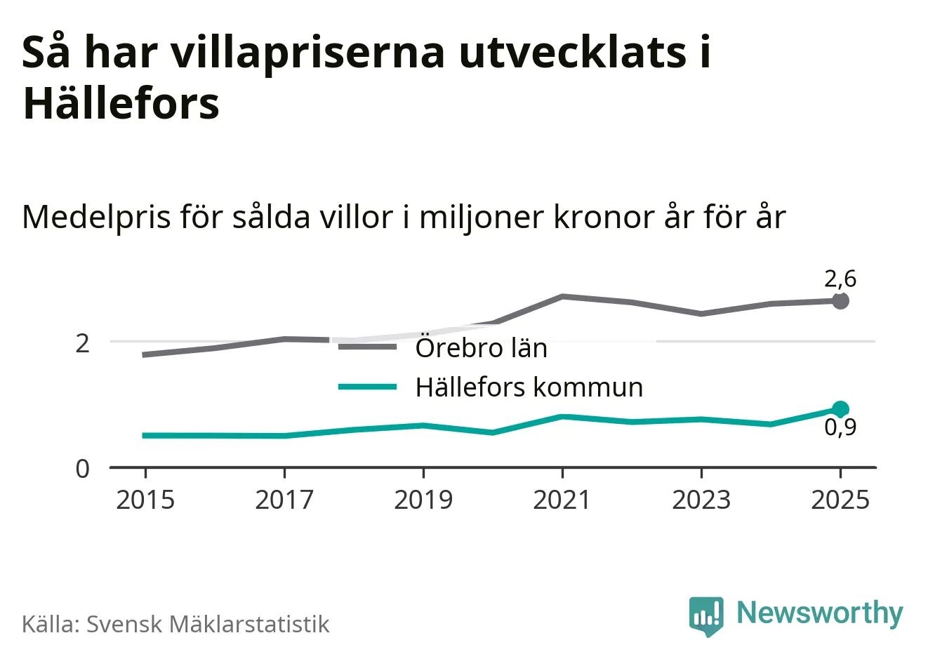 Bostadsmarknaden i Sverige närmar sig nivån före räntesmockan 2022. I Hällefors nådde priserna på villor en ny rekordnivå.