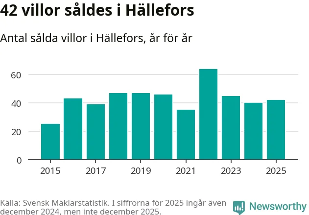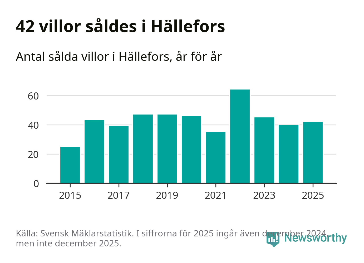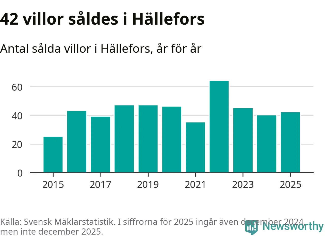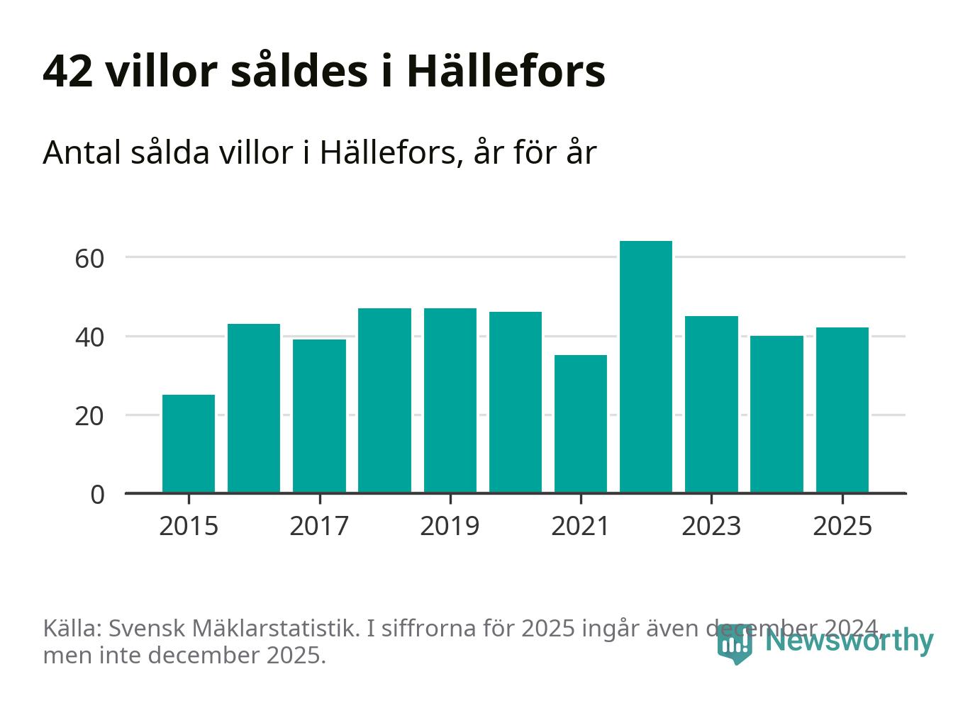 Antalet sålda villor ökade också något. Totalt såldes 42 villor, att jämföra med 40 under 2024.