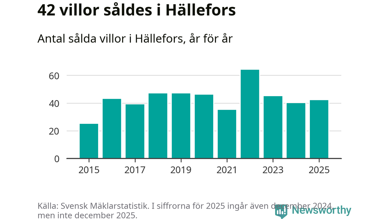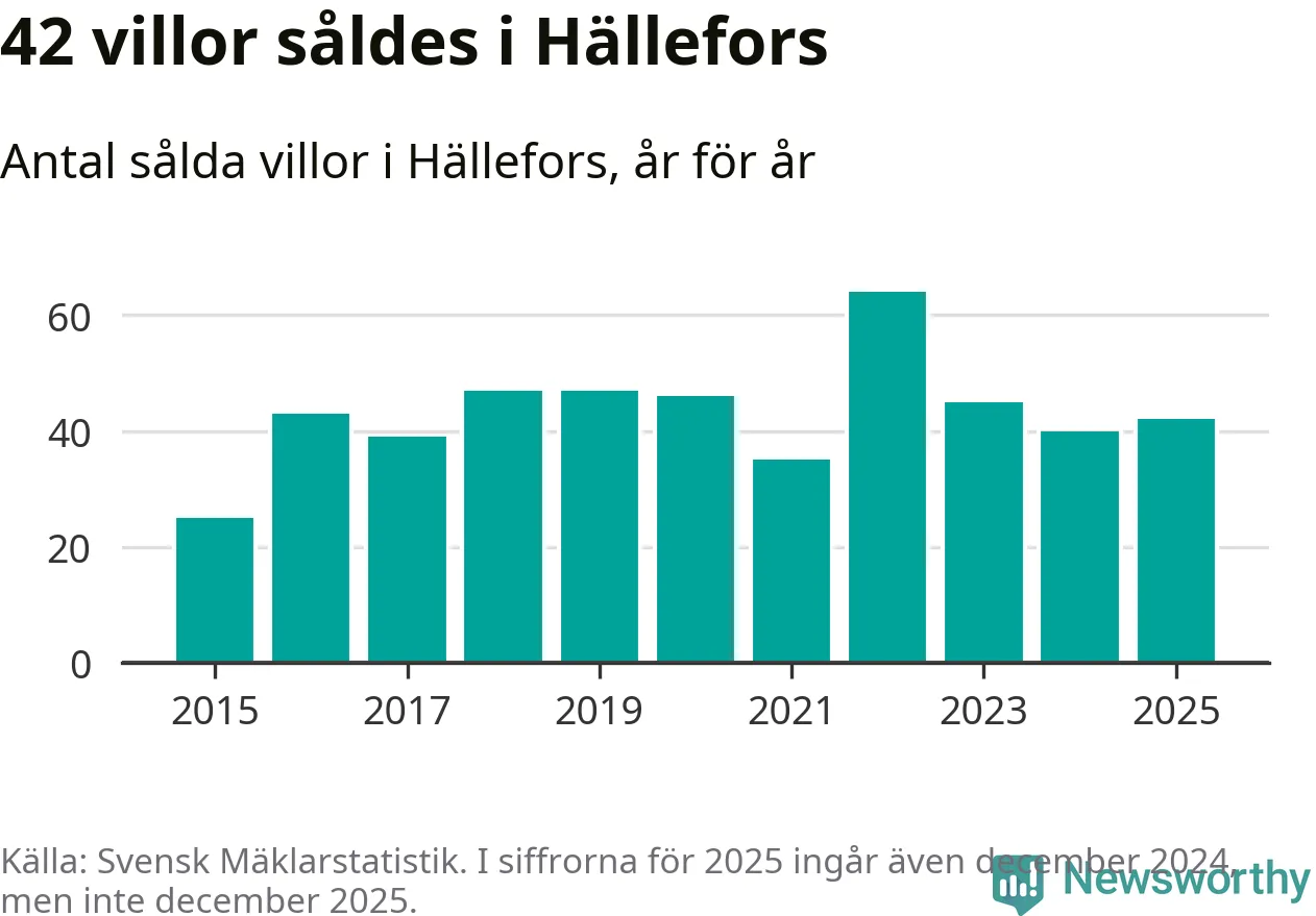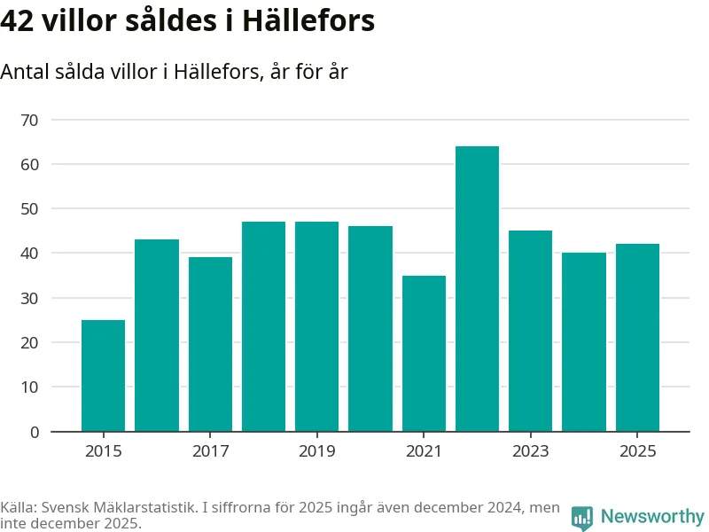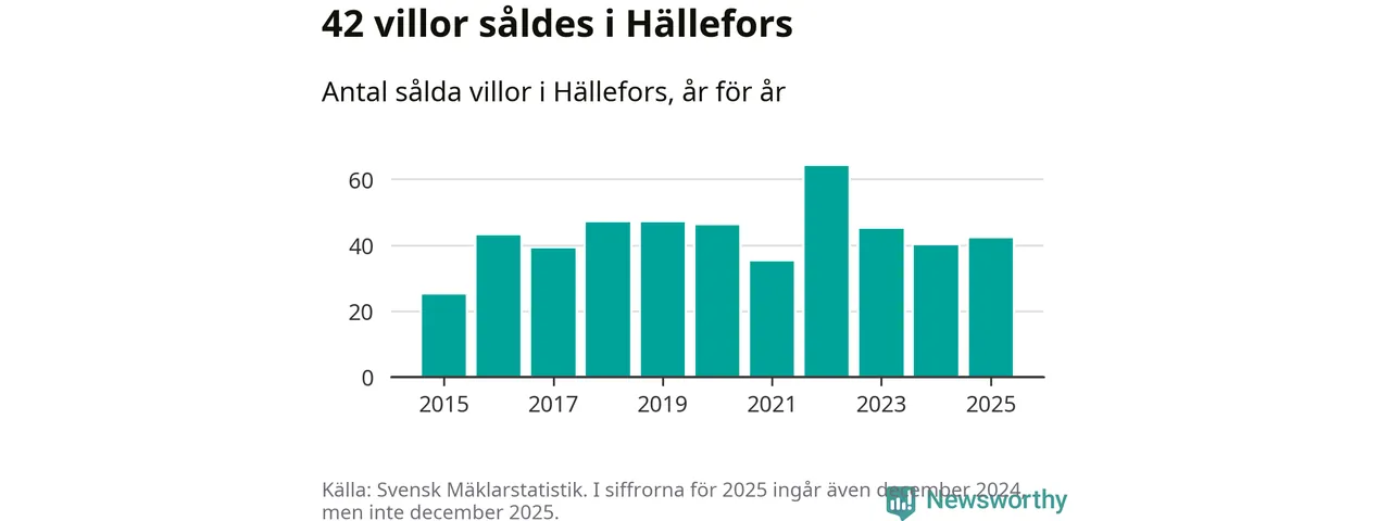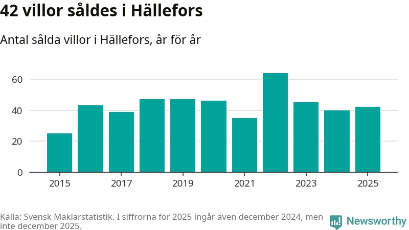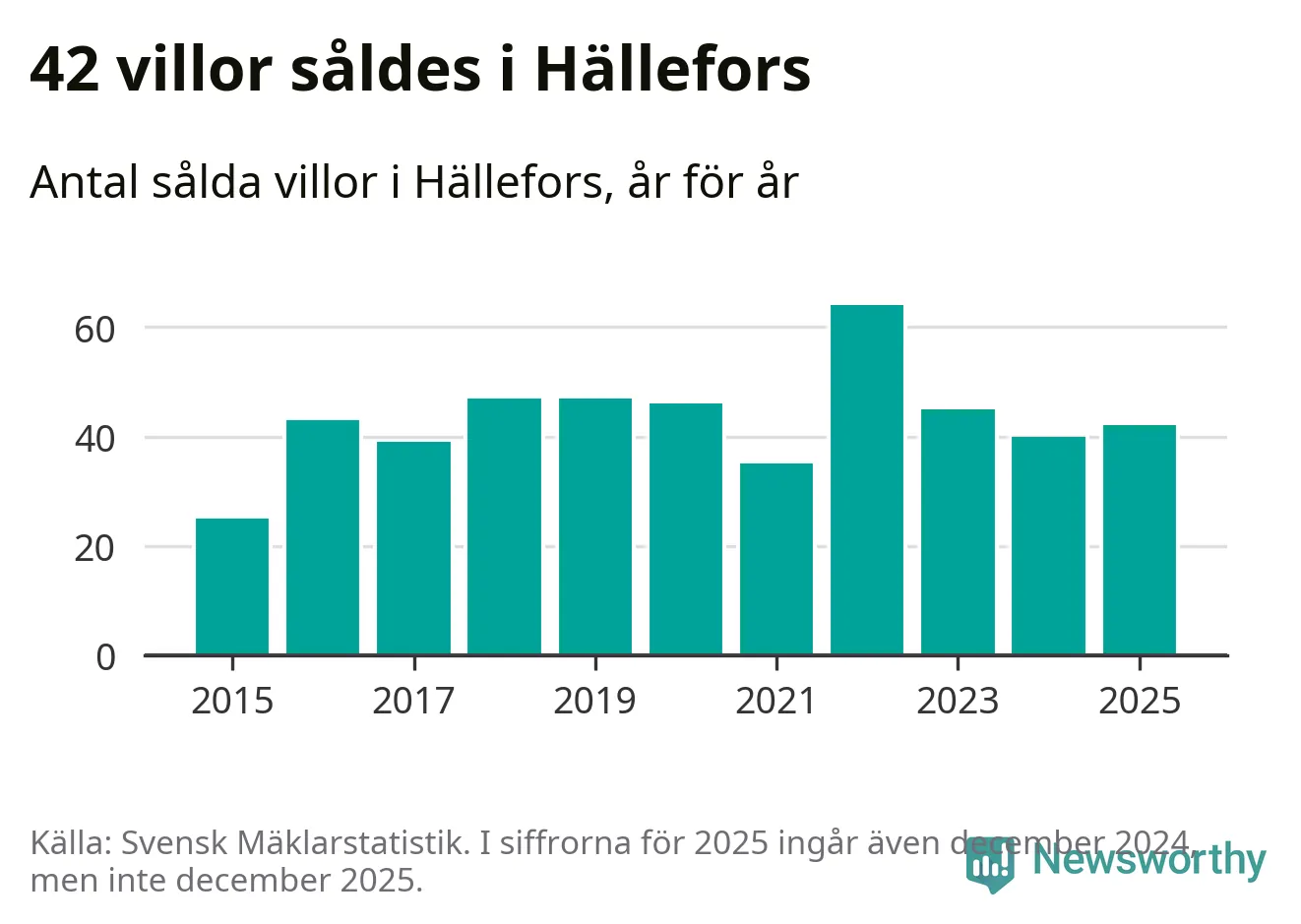 Antalet sålda villor ökade också något. Totalt såldes 42 villor, att jämföra med 40 under 2024.