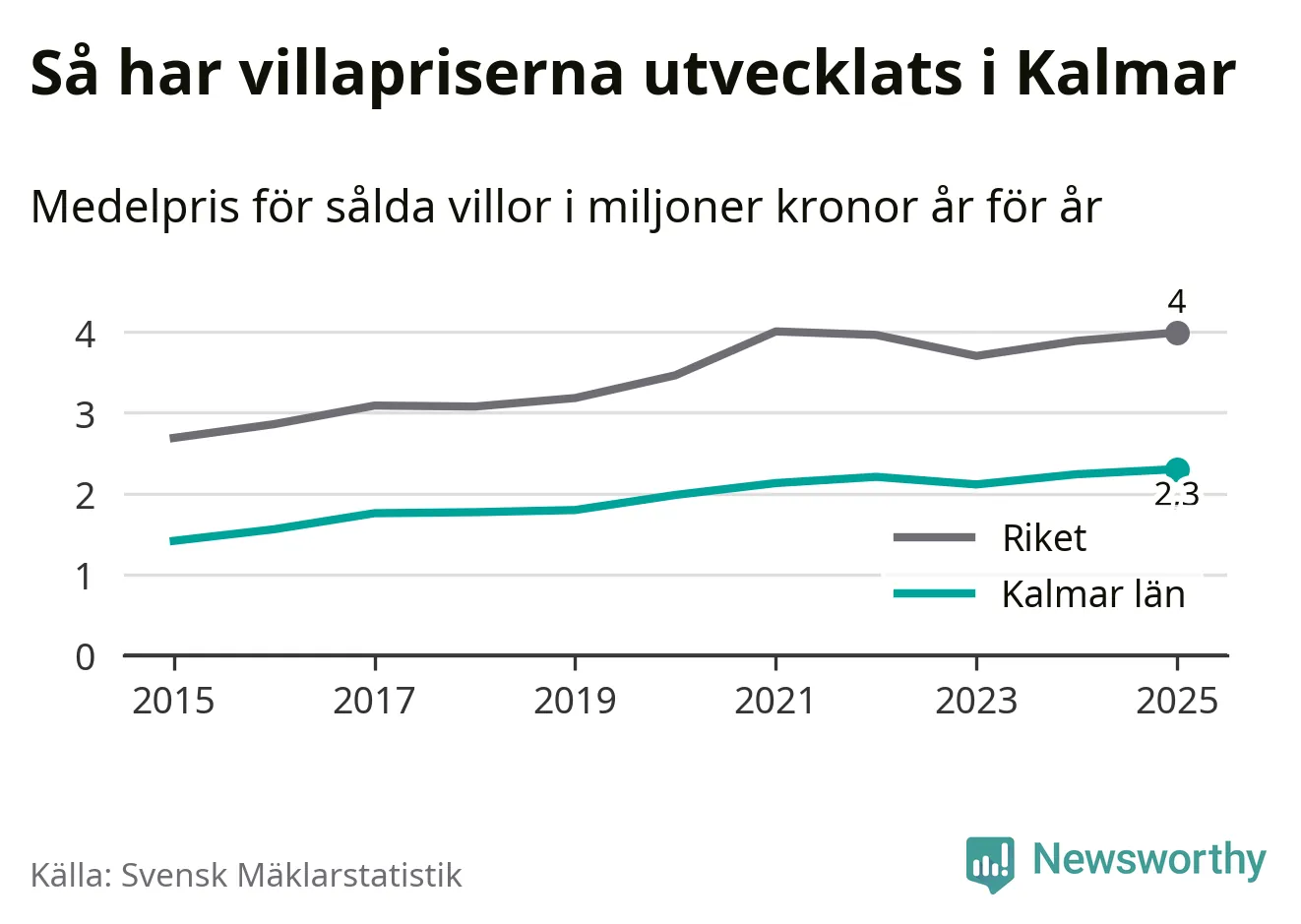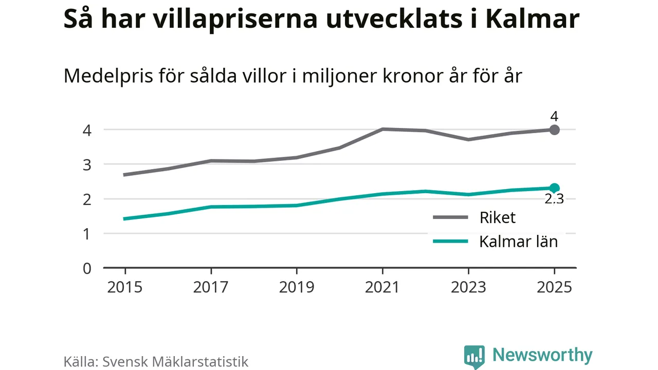 Bostadsmarknaden i Sverige närmar sig nivån före räntesmockan 2022. I Kalmar län nådde priserna på villor en ny rekordnivå.