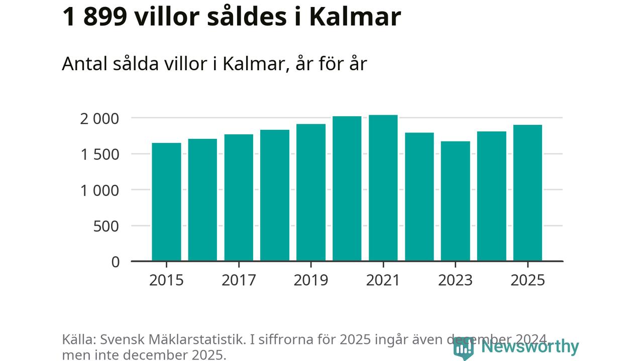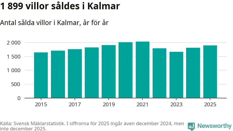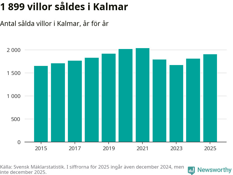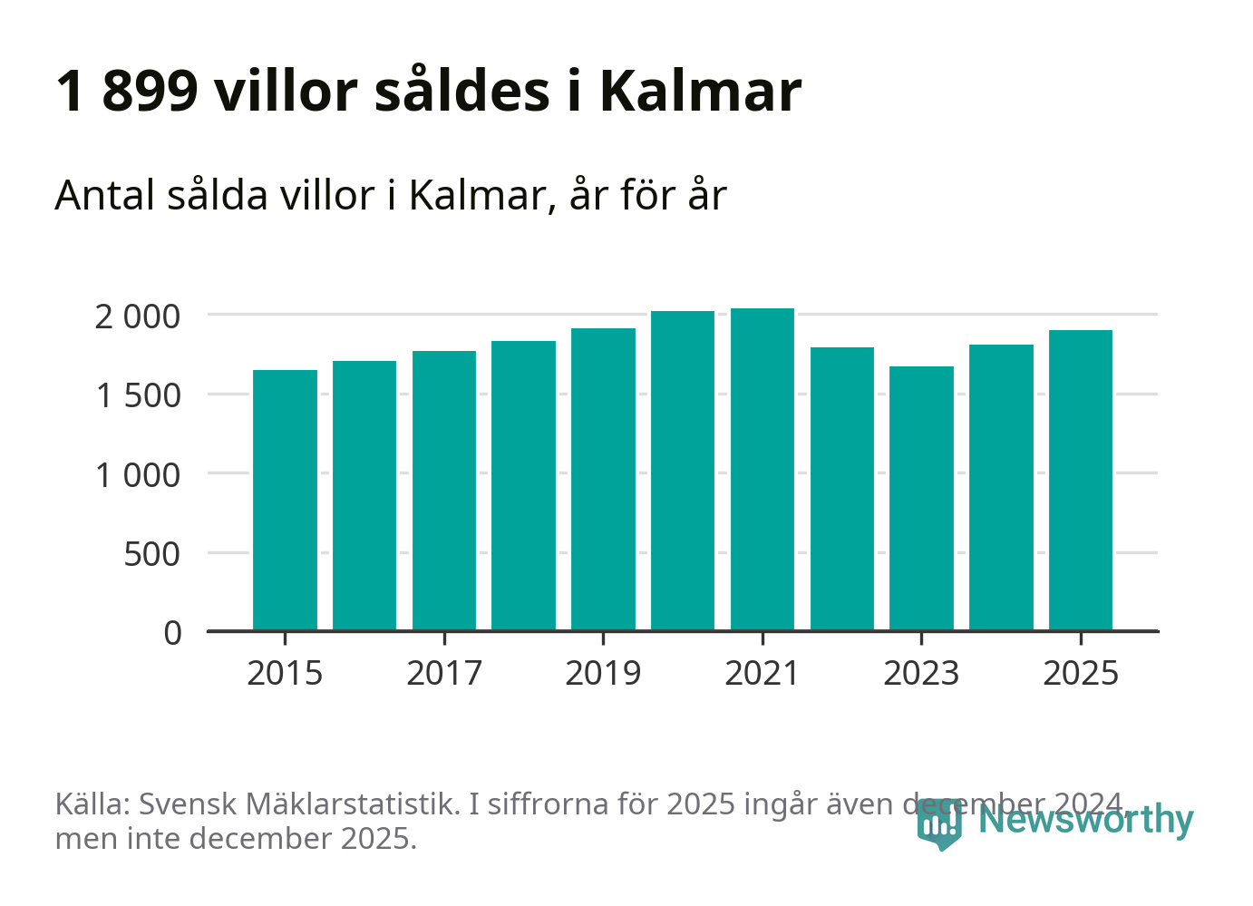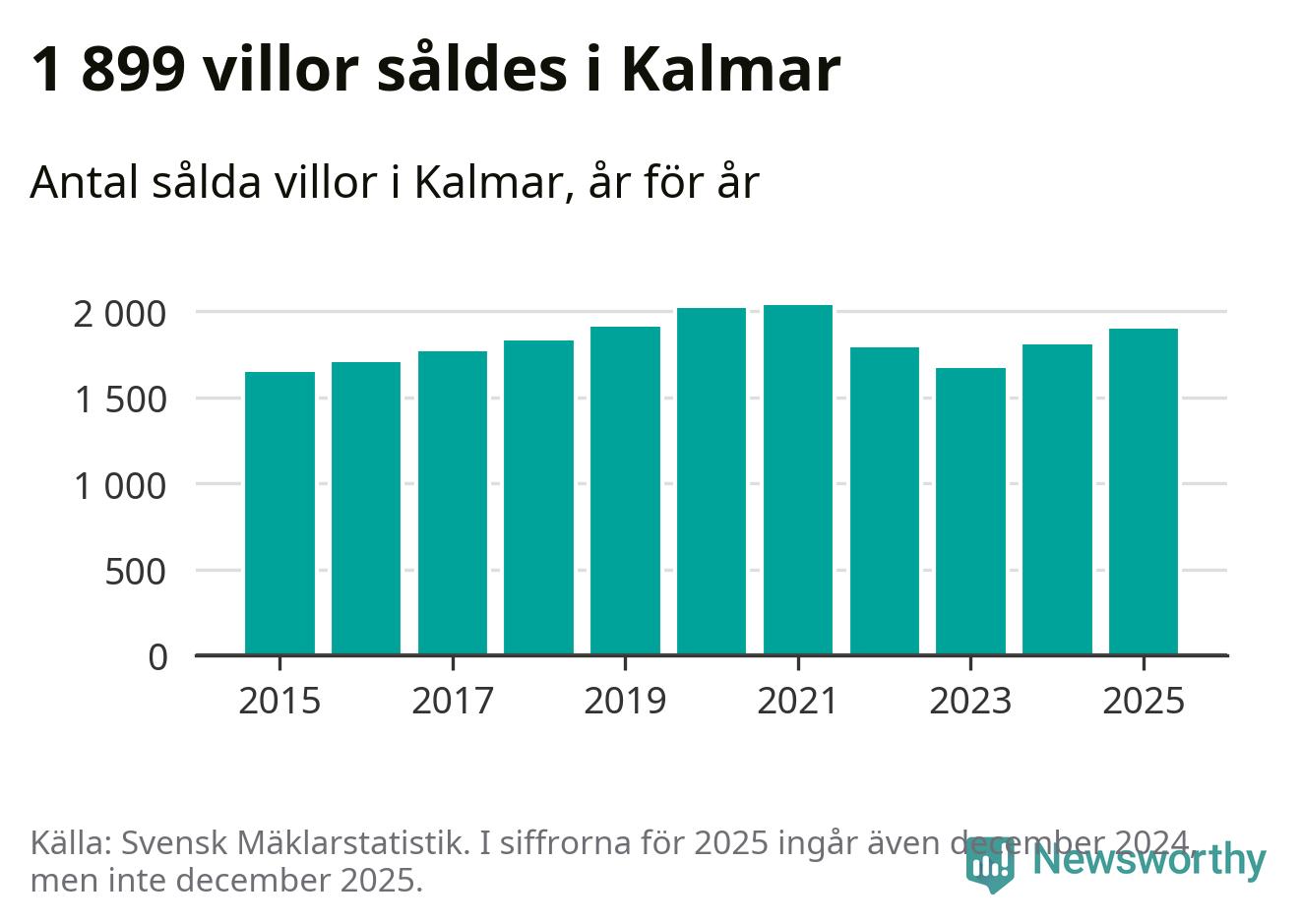 Antalet sålda villor ökade också. Totalt såldes 1 899 villor, att jämföra med 1 810 under 2024. Det är andra året i rad som antalet sålda villor ökar i länet.