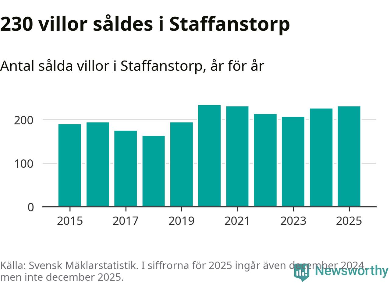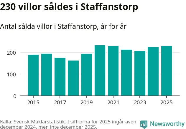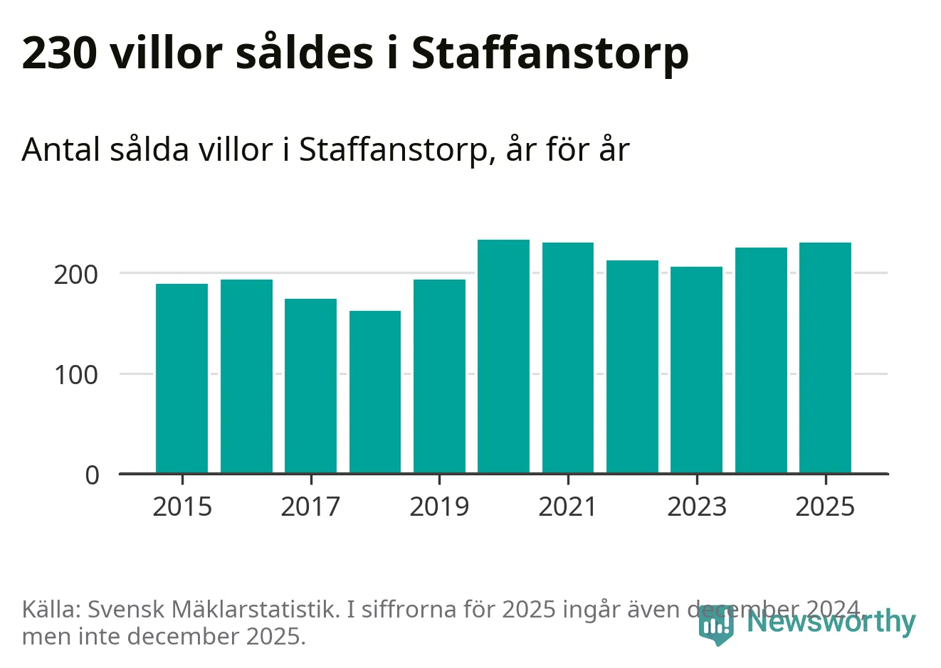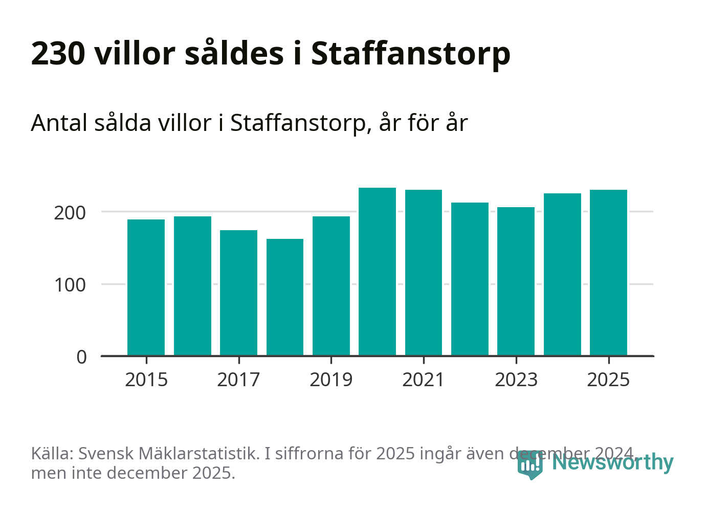 Antalet sålda villor ökade också. Totalt såldes 230 villor, att jämföra med 225 under 2024. Det är andra året i rad som antalet sålda villor ökar i kommunen.