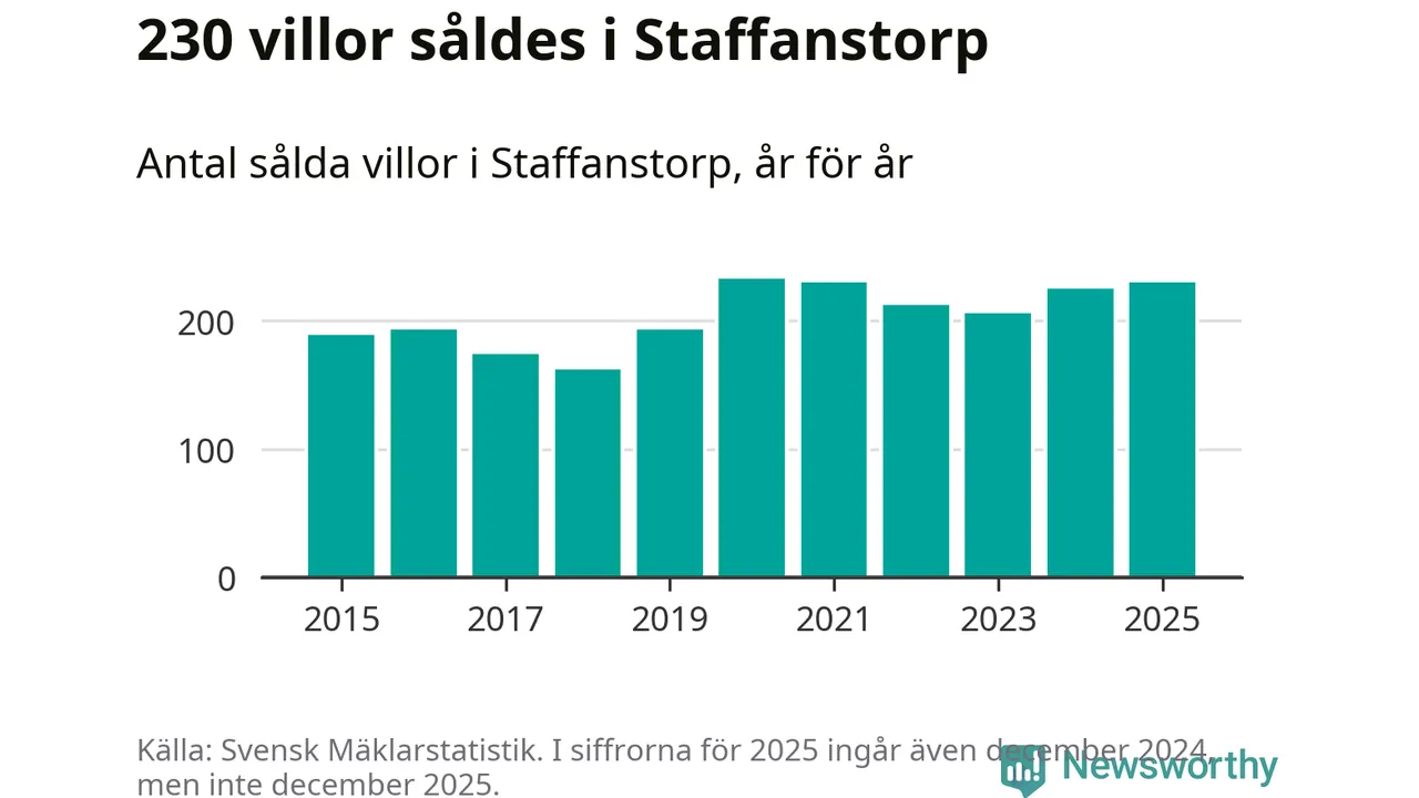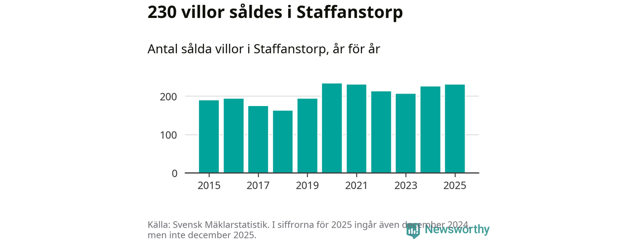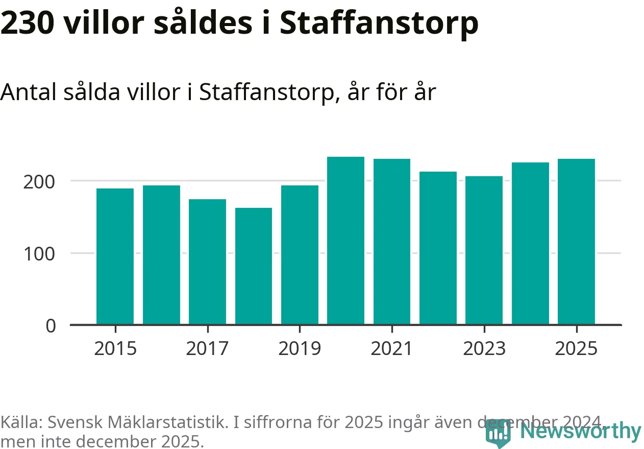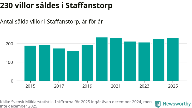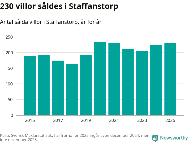 Antalet sålda villor ökade också. Totalt såldes 230 villor, att jämföra med 225 under 2024. Det är andra året i rad som antalet sålda villor ökar i kommunen.
