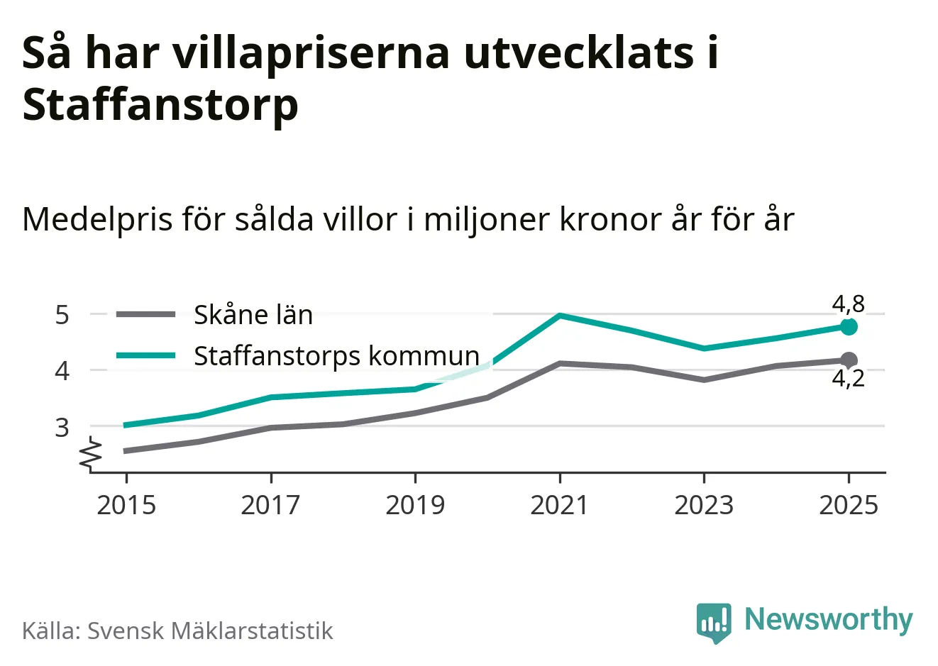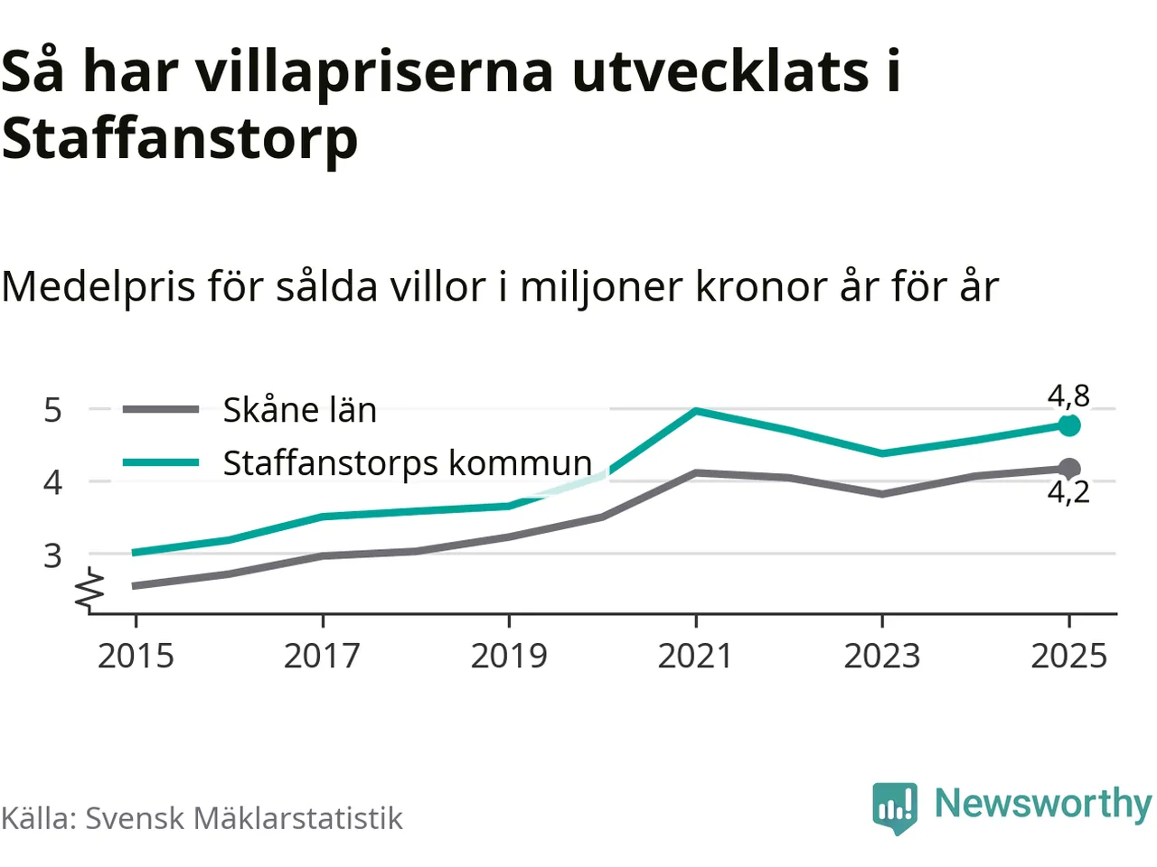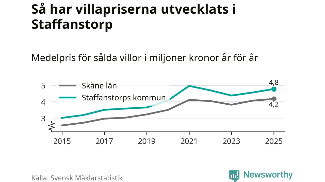 Bostadsmarknaden i Sverige närmar sig nivån före räntesmockan 2022. I Staffanstorp ökade villapriserna för andra året i rad.