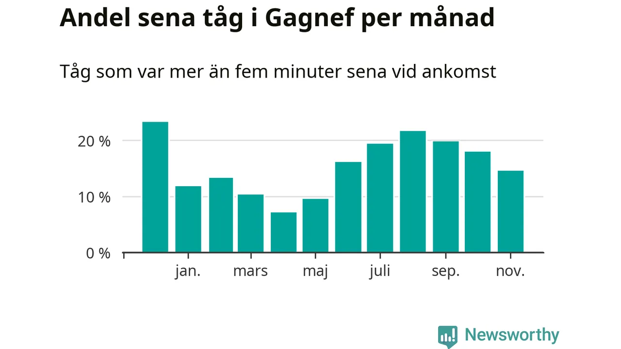 Andelen sena tåg vid stationerna Djurås och Gagnef har minskat de senaste månaderna. Newsworthy och Sveriges Natur har studerat tågens punktlighet det senaste året, på jakt efter järnvägens flaskhalsar.
