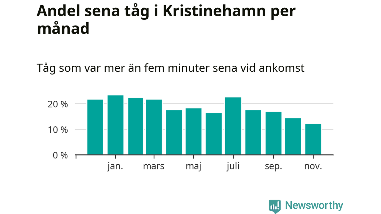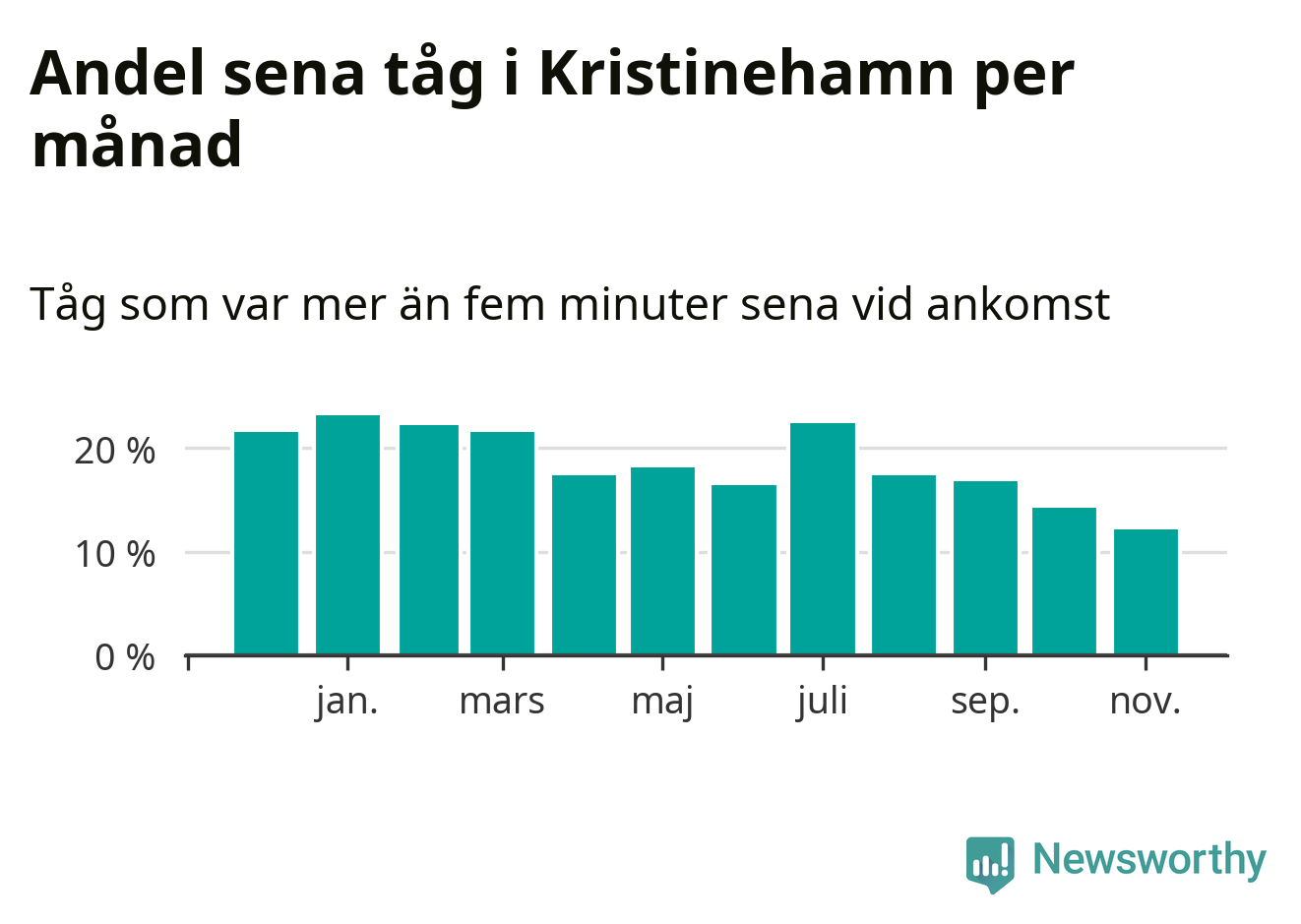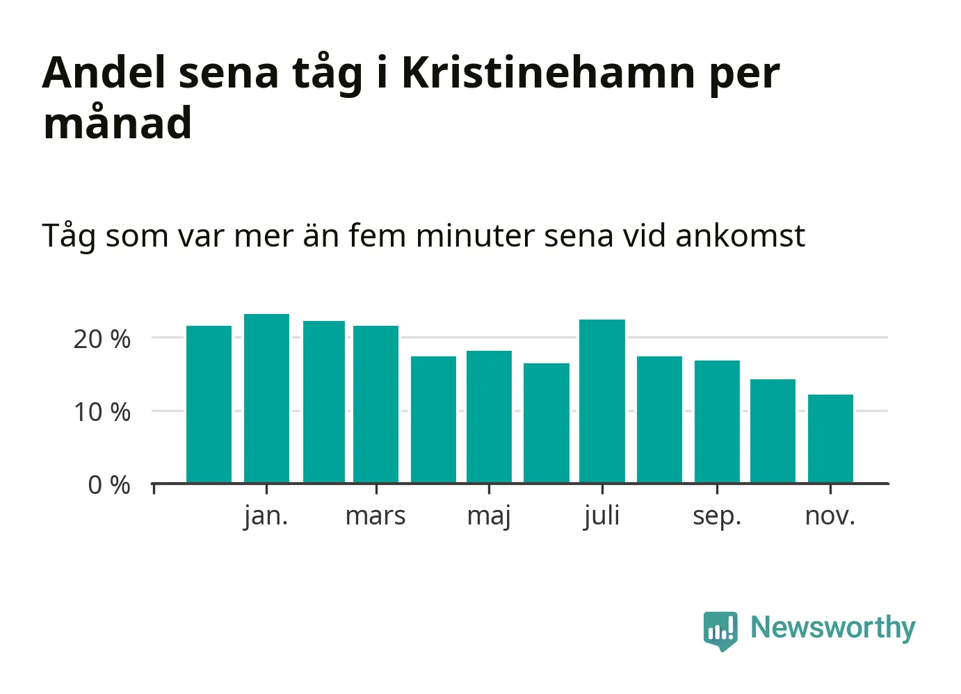 Andelen sena tåg vid Kristinehamn har minskat de senaste månaderna. Newsworthy och Sveriges Natur har studerat tågens punktlighet det senaste året, på jakt efter järnvägens flaskhalsar.
