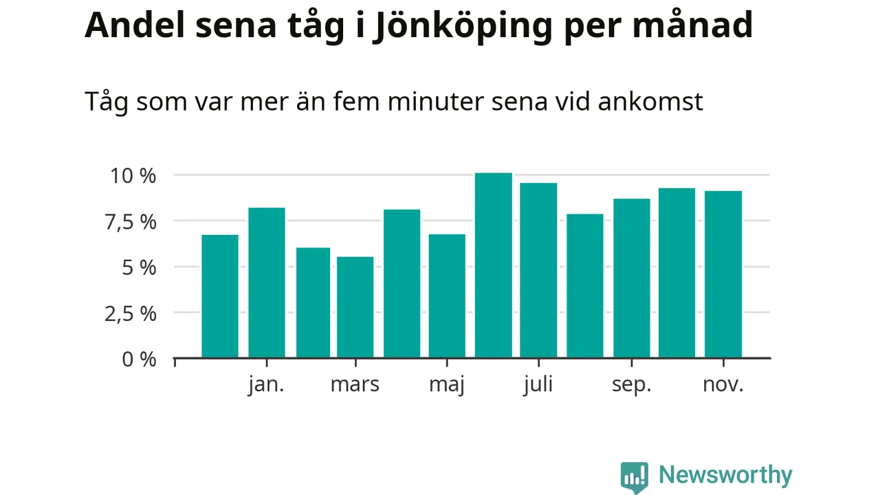 Det senaste halvåret har andelen sena tåg vid stationerna i Jönköpings län varit högre än halvåret innan dess. Newsworthy och Sveriges Natur har studerat tågens punktlighet det senaste året, på jakt efter järnvägens flaskhalsar.