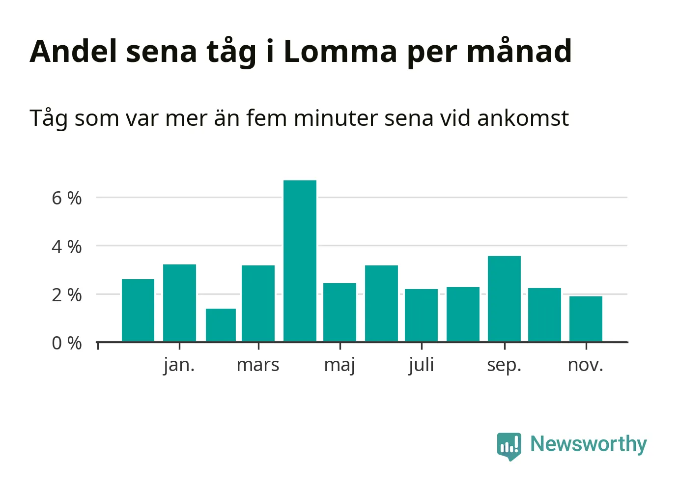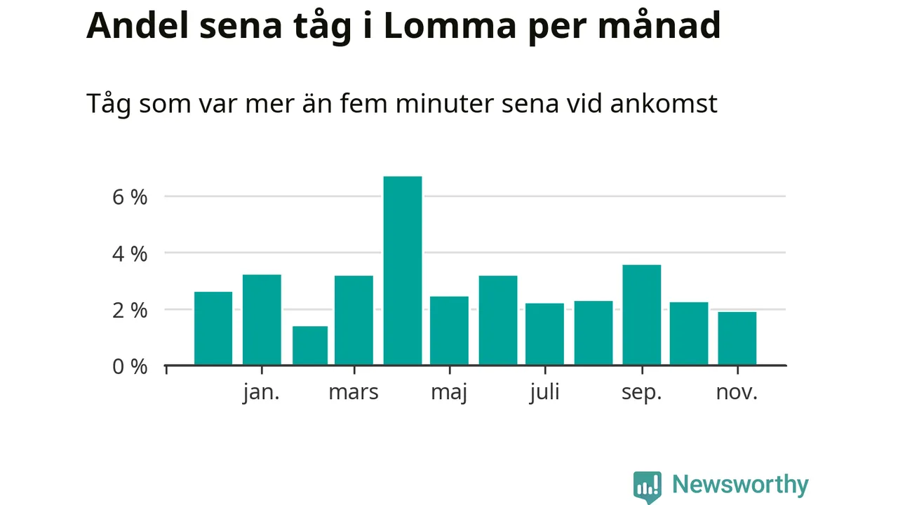 Tågtrafiken vid Lomma station har legat på rätt sida av punktlighetsmålet det senaste året. Newsworthy och Sveriges Natur har studerat tågens punktlighet det senaste året, på jakt efter järnvägens flaskhalsar.