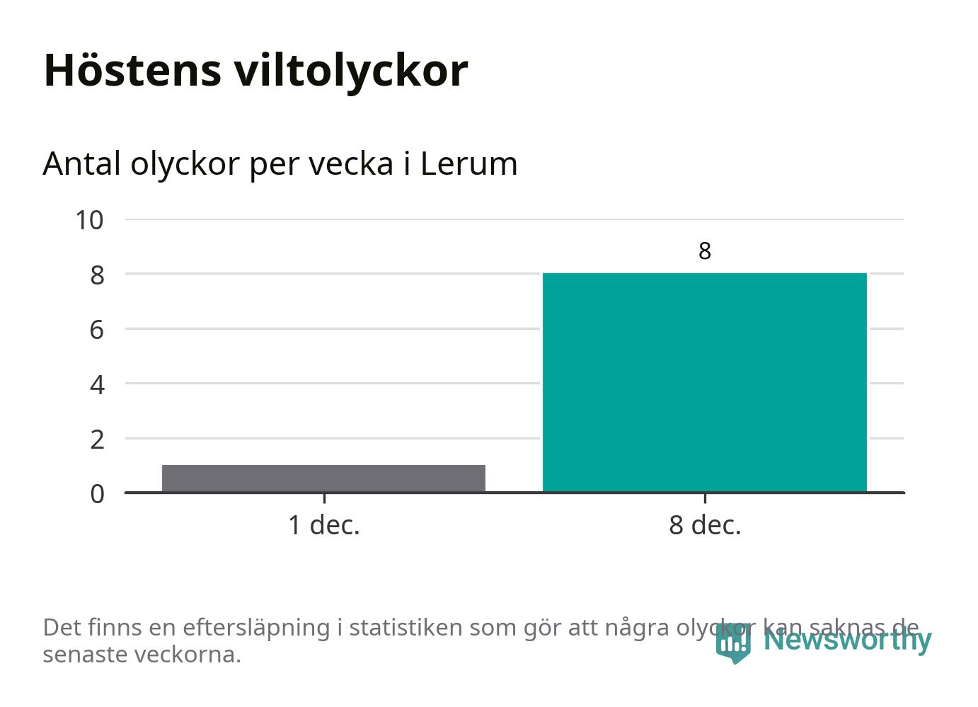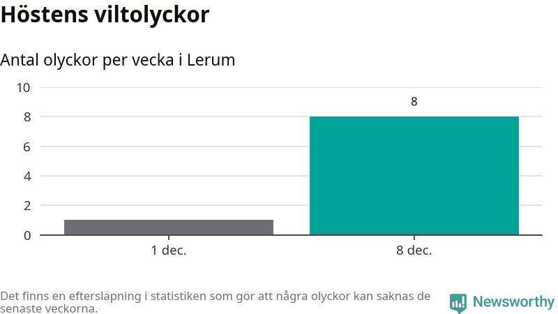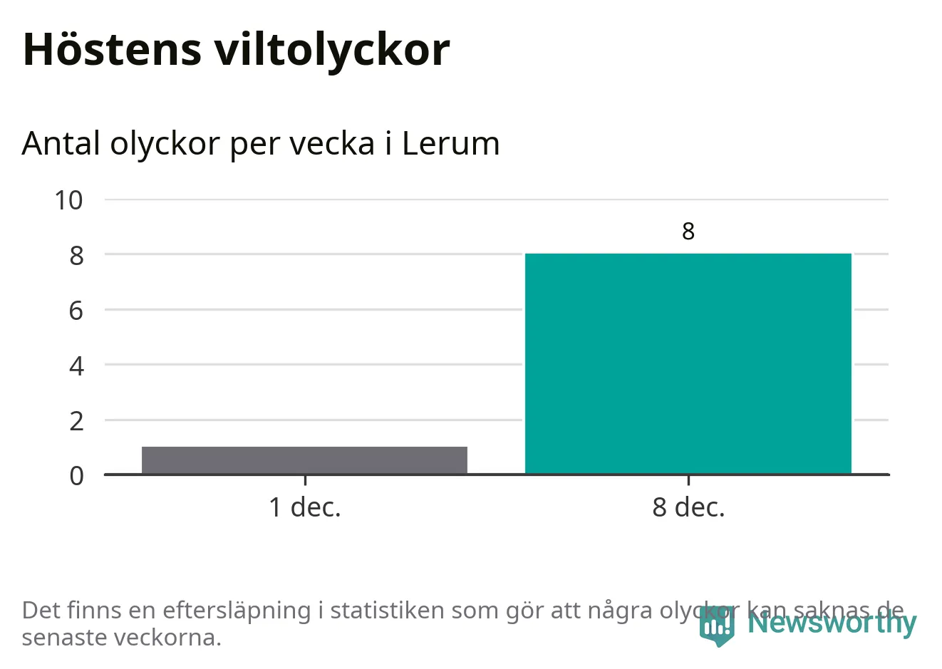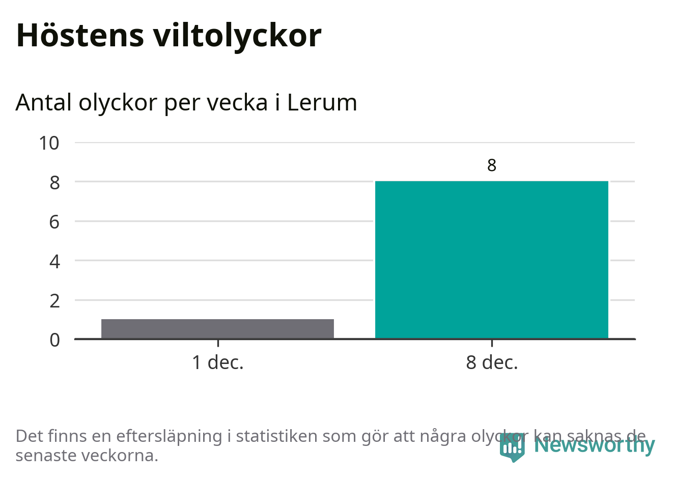 Hittills har åtta viltolyckor rapporterats in i Lerums kommun från vecka 50. Det är en av de högsta vintersiffrorna för en enskild vecka på över tio år.