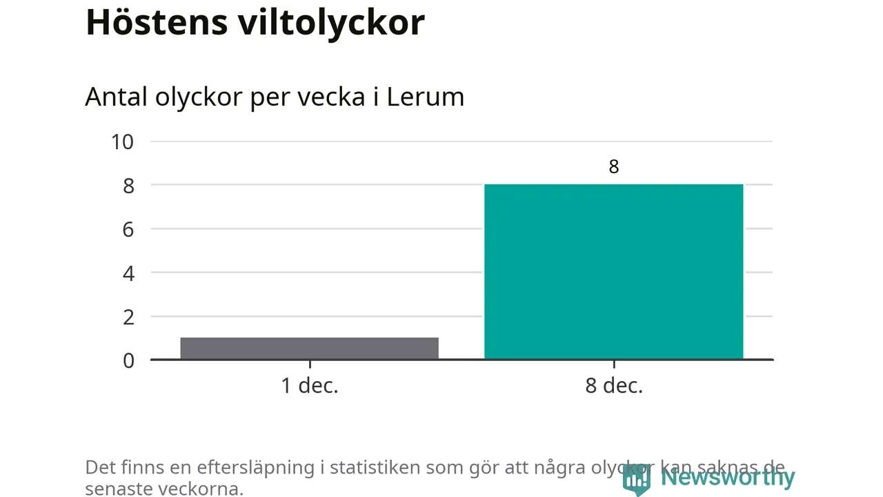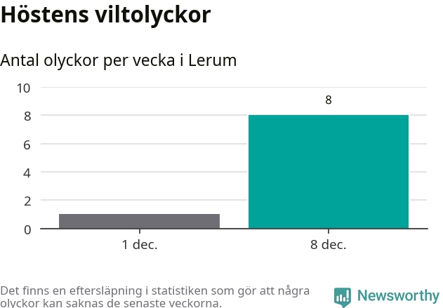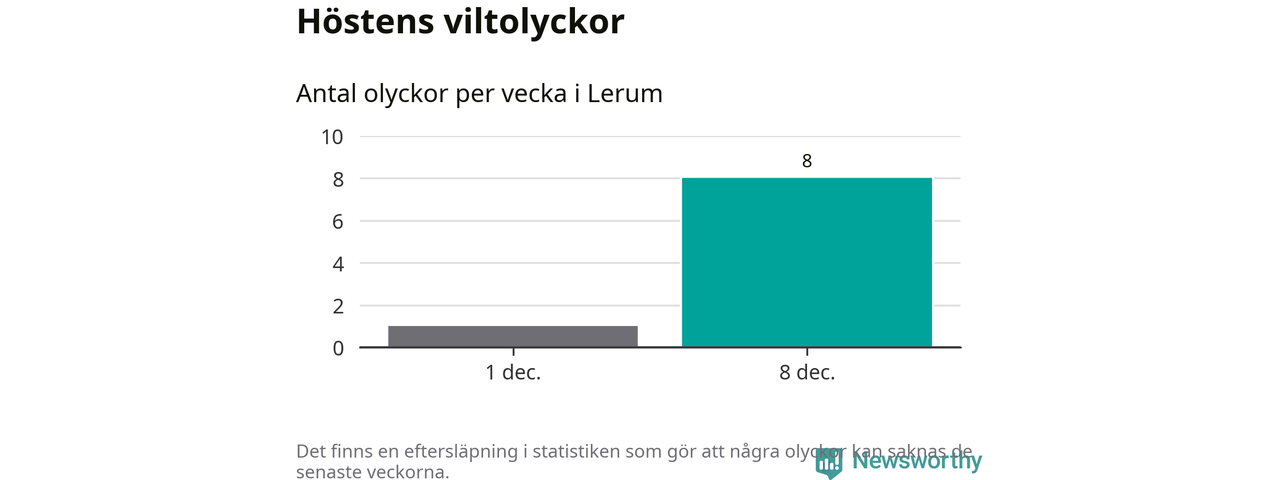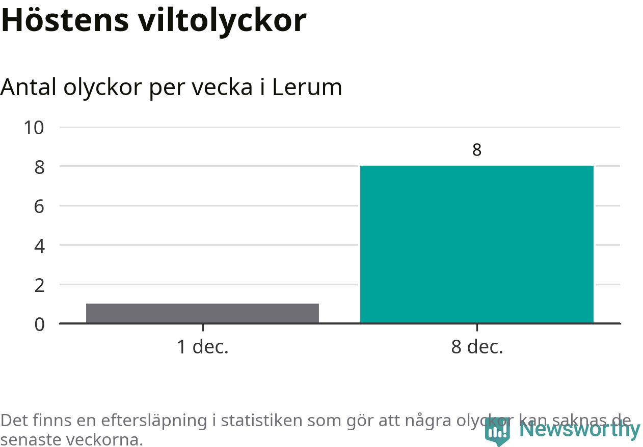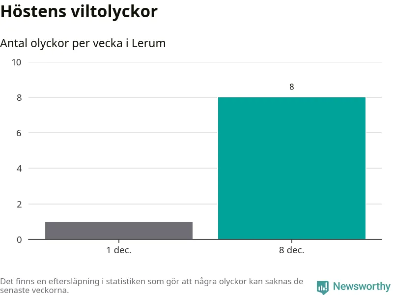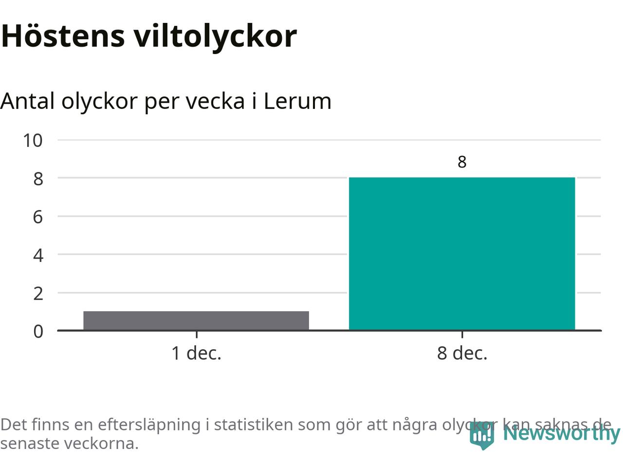 Hittills har åtta viltolyckor rapporterats in i Lerums kommun från vecka 50. Det är en av de högsta vintersiffrorna för en enskild vecka på över tio år.