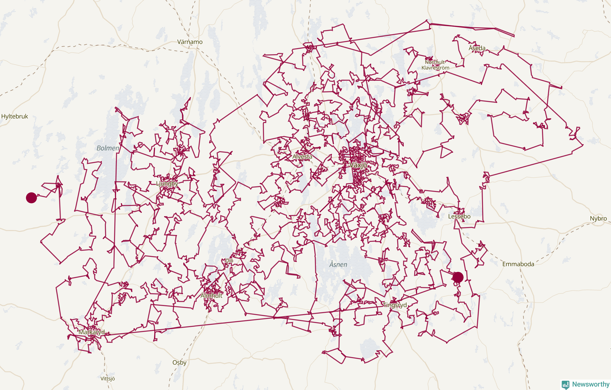 Karta: Här är tomtens optimala rutt i Kronoberg