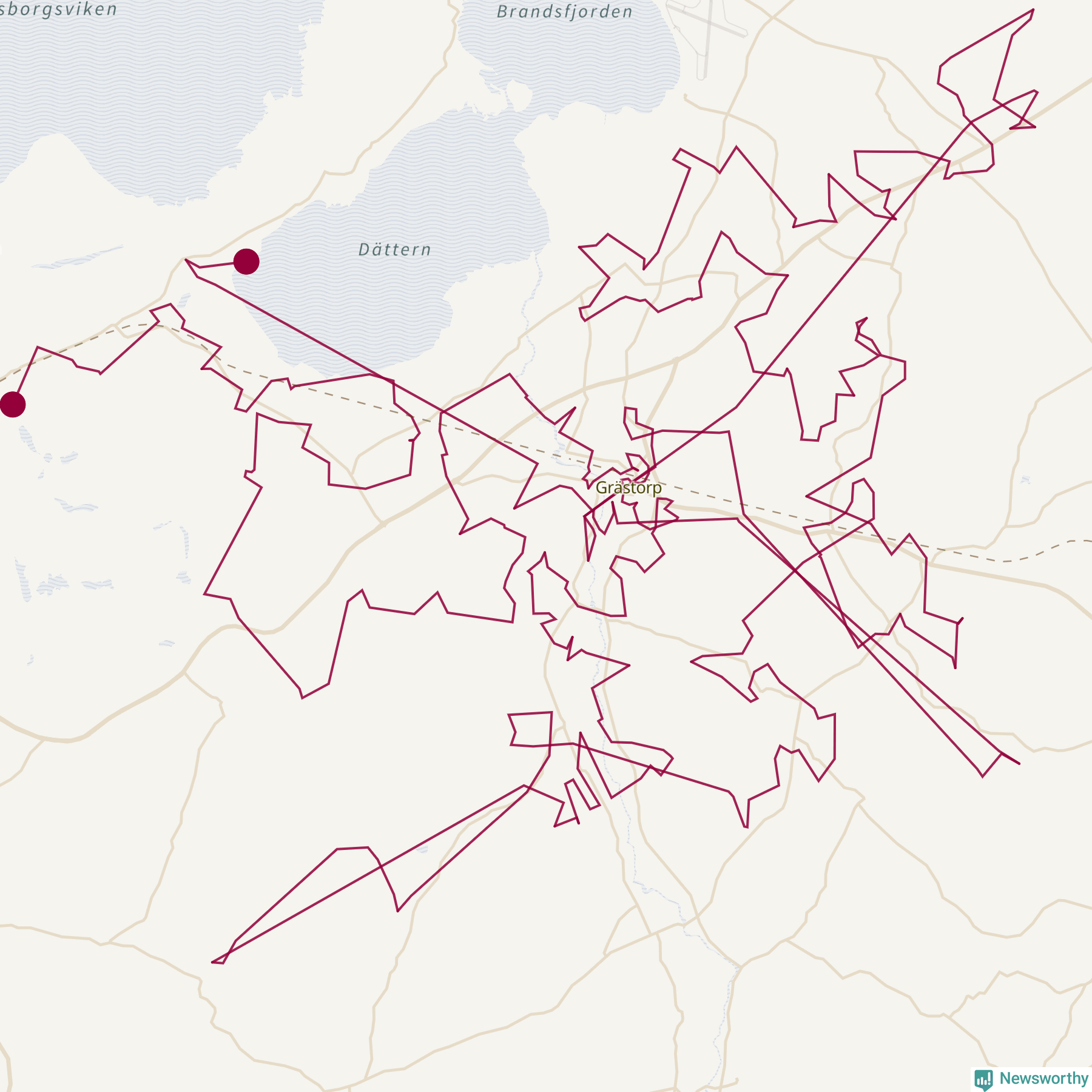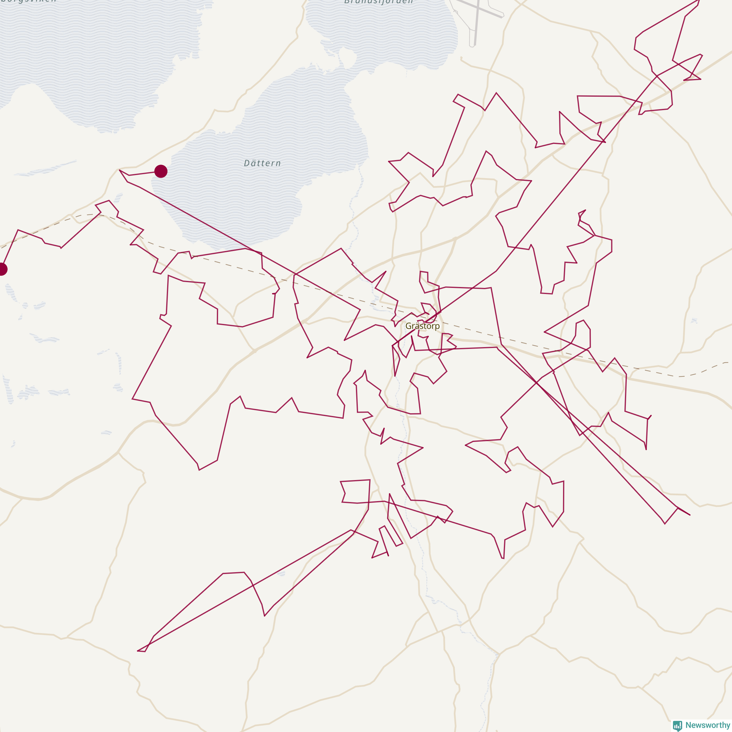 Så här skulle tomtens resa kunna se ut i Grästorp: