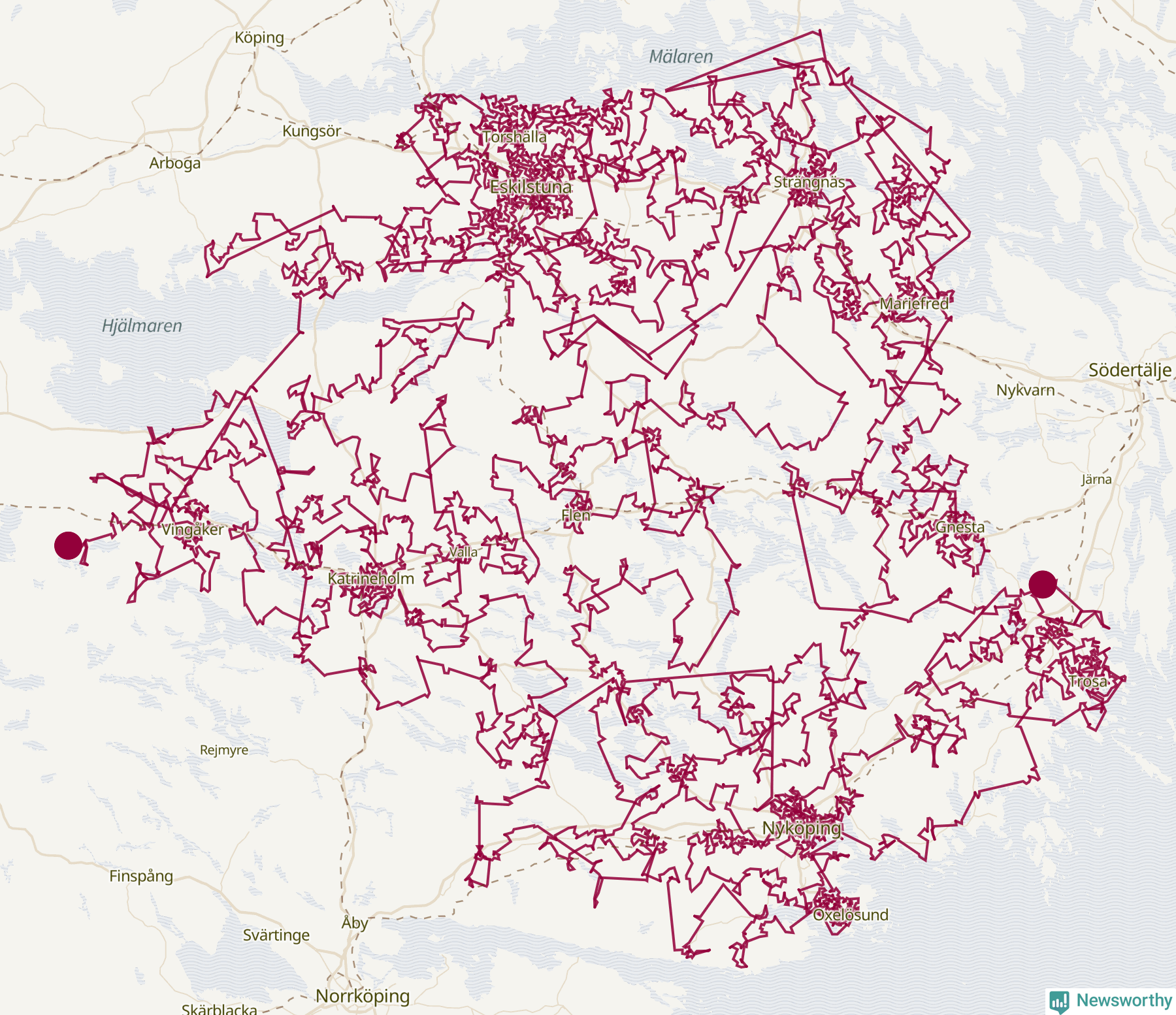 Så här skulle tomtens resa kunna se ut i Södermanland: