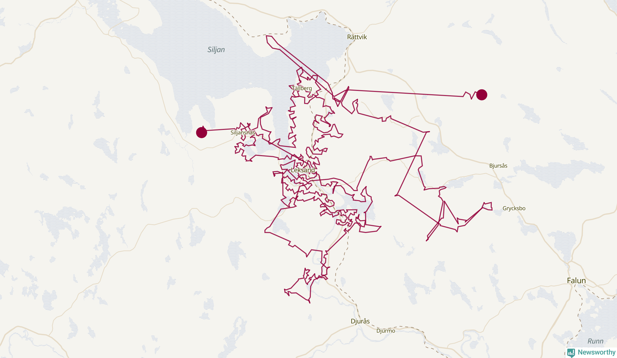 Så här skulle tomtens resa kunna se ut i Leksand: