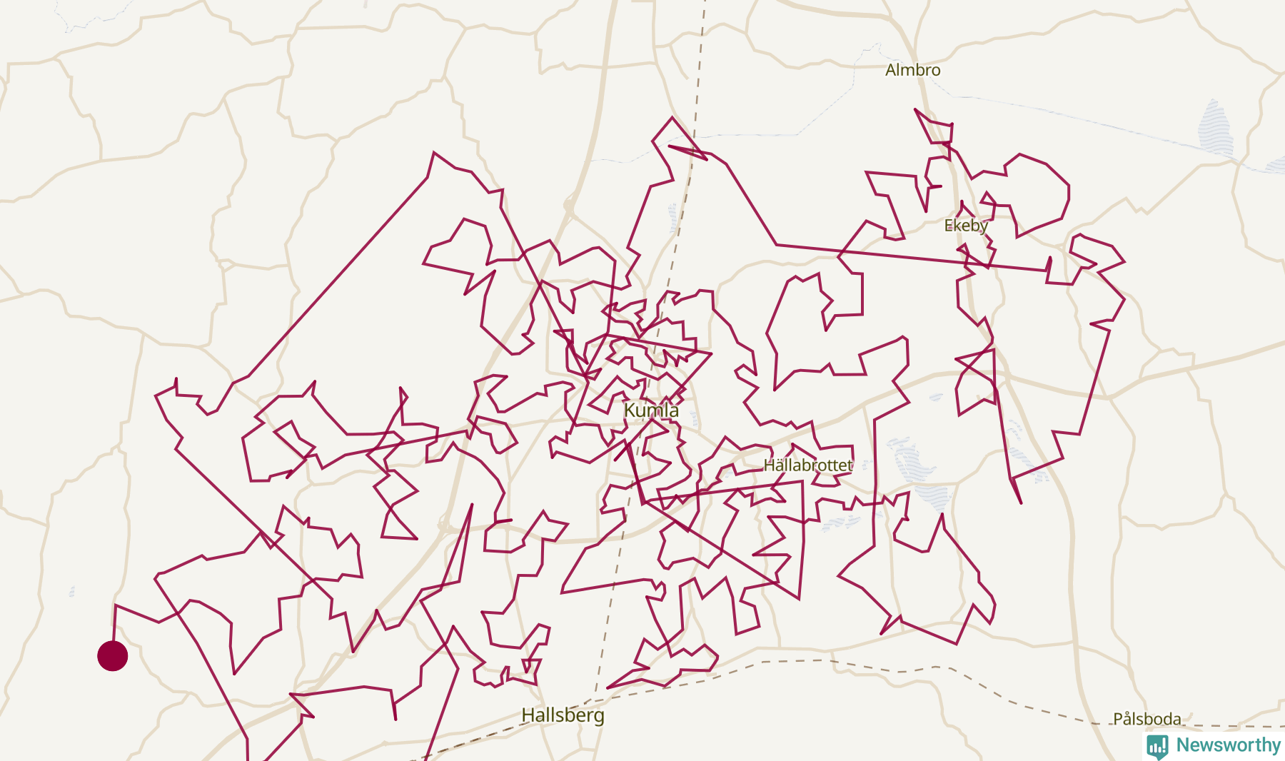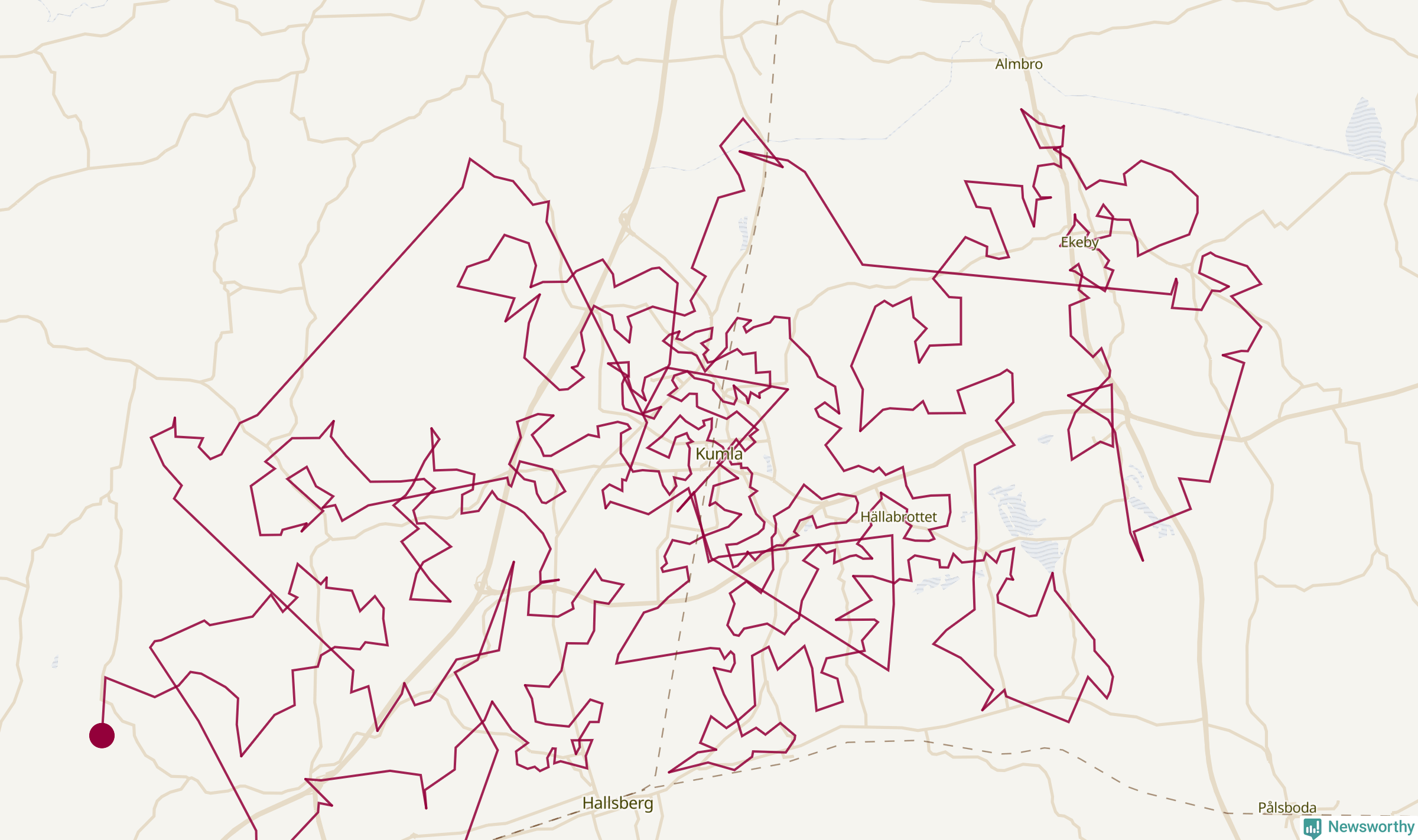 Så här skulle tomtens resa kunna se ut i Kumla: