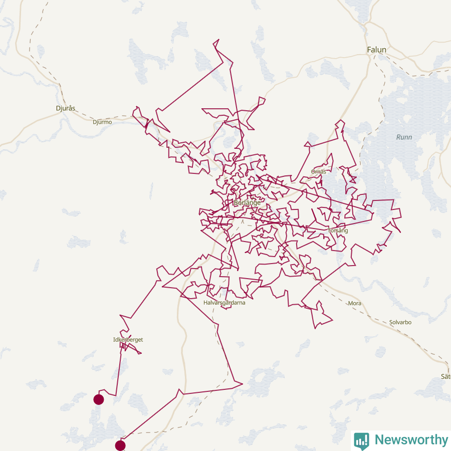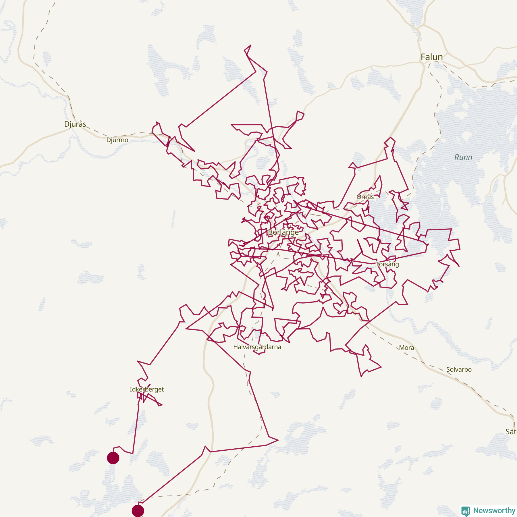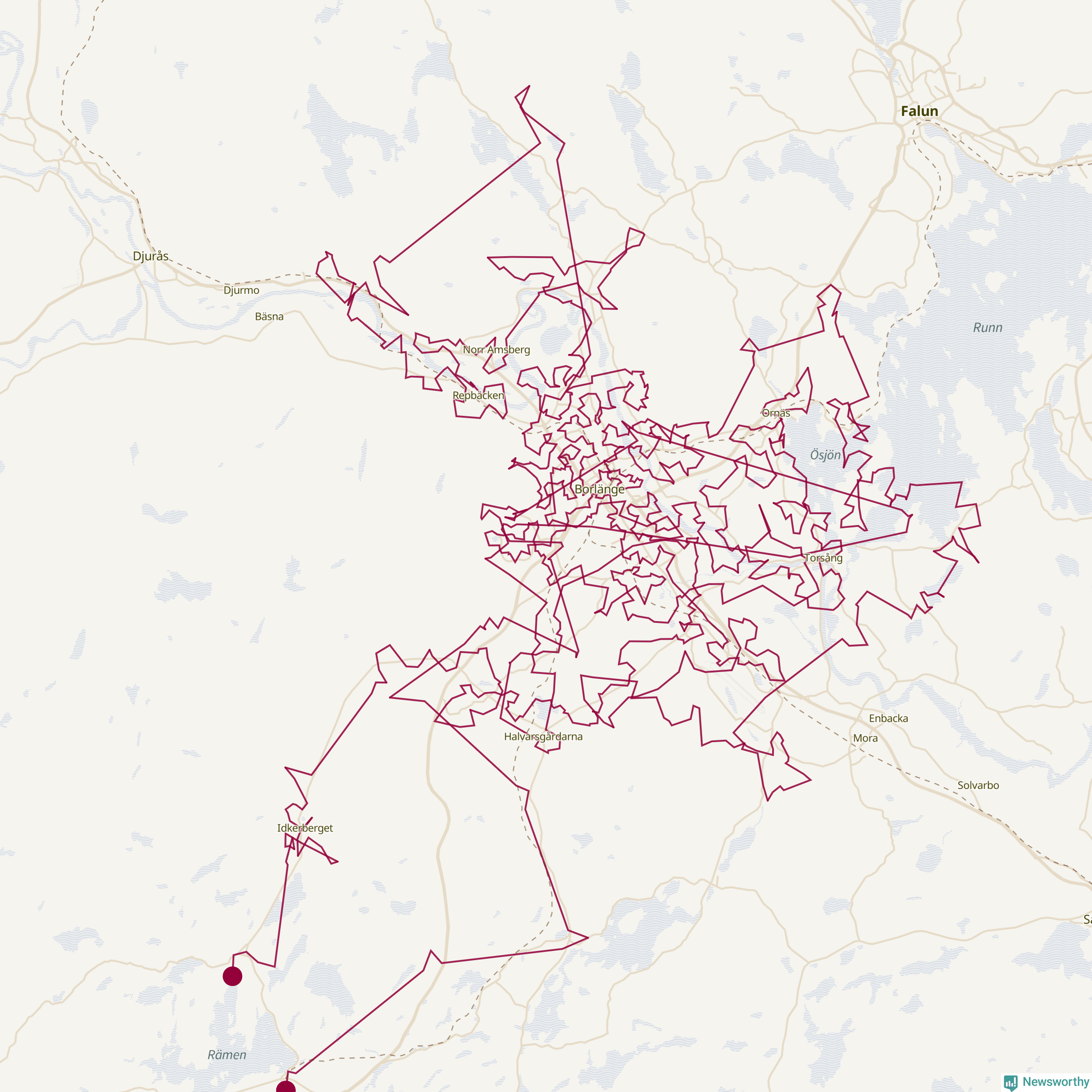 Så här rekommenderar vi att tomten reser för att hinna besöka alla barn i Borlänge.