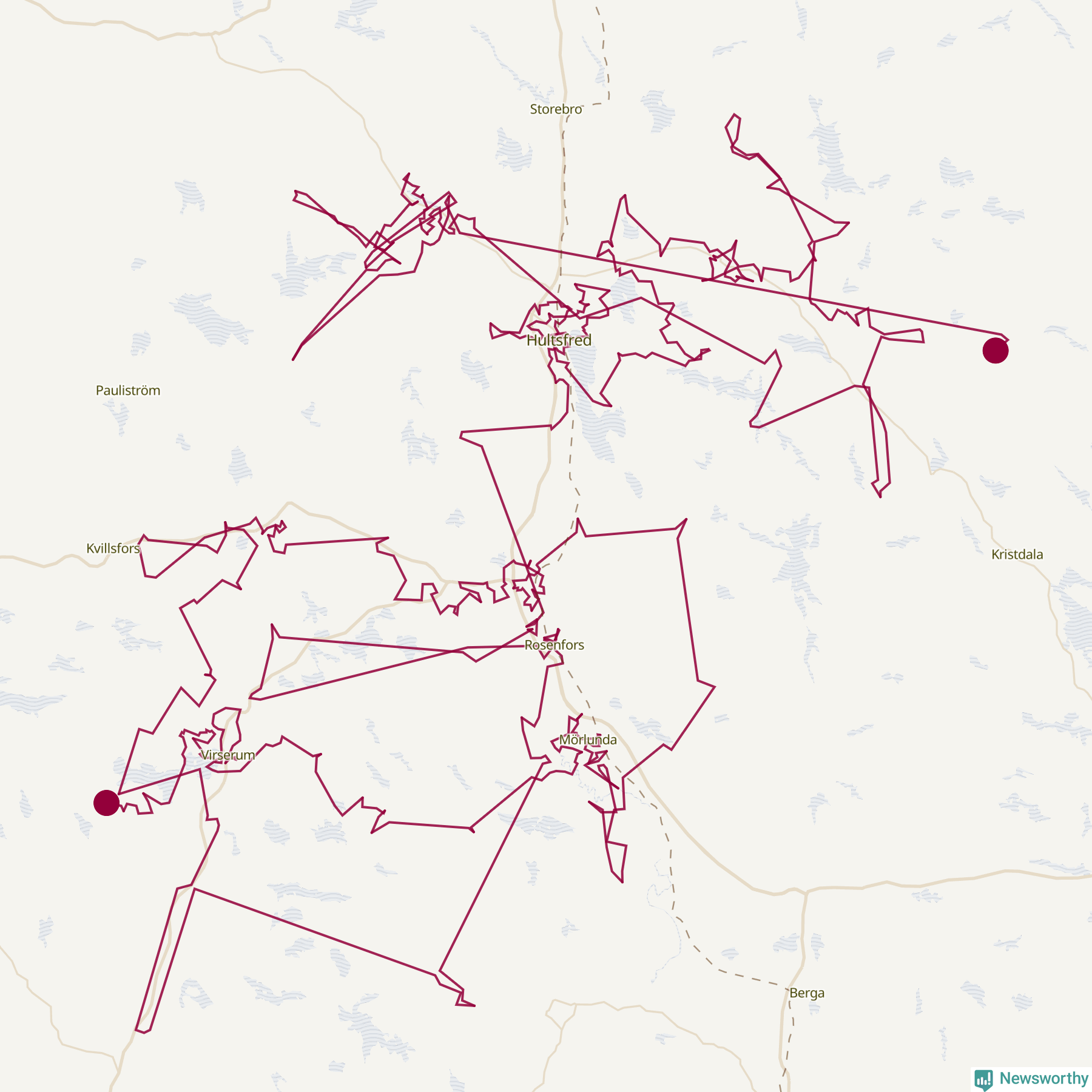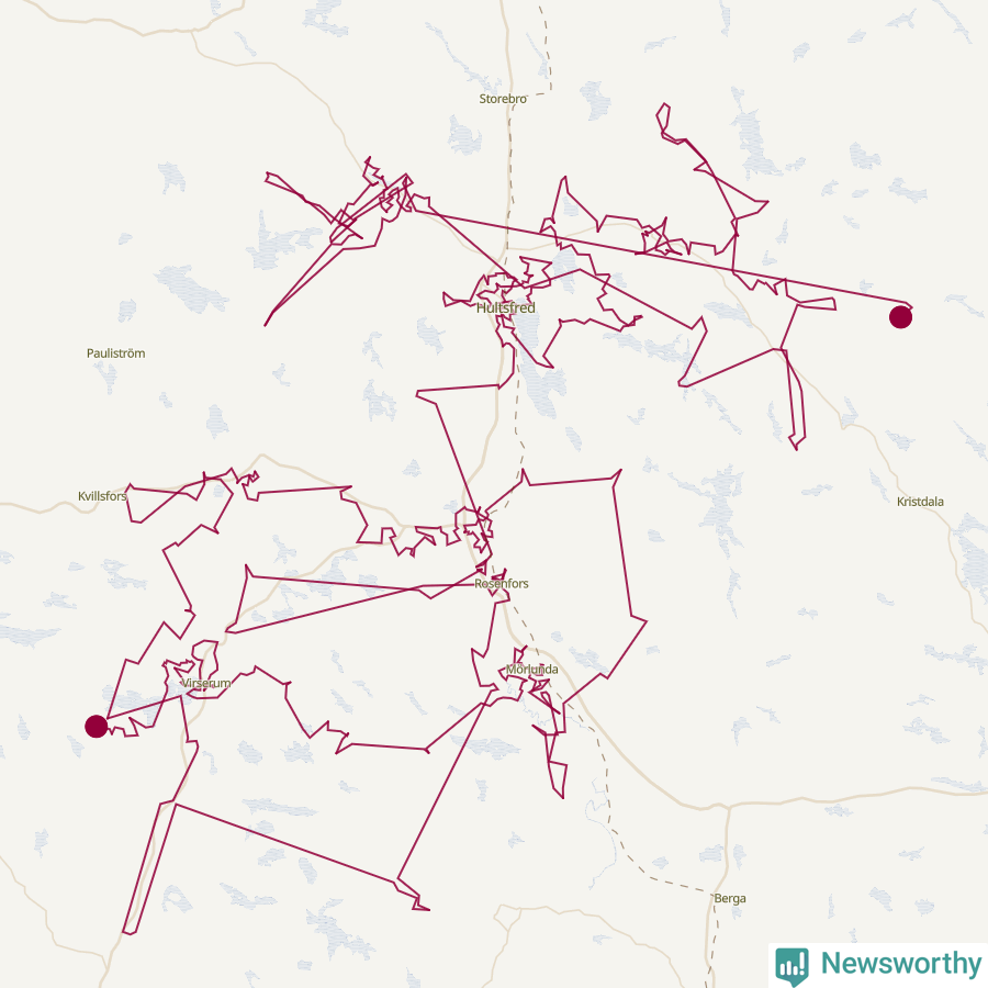 Så här skulle tomtens resa kunna se ut i Hultsfred:
