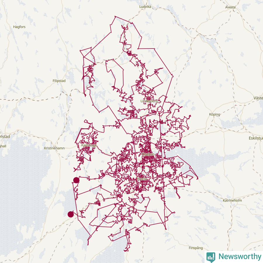 Så här skulle tomtens resa kunna se ut i Örebro: