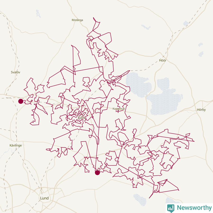 Så här skulle tomtens resa kunna se ut i Eslöv:
