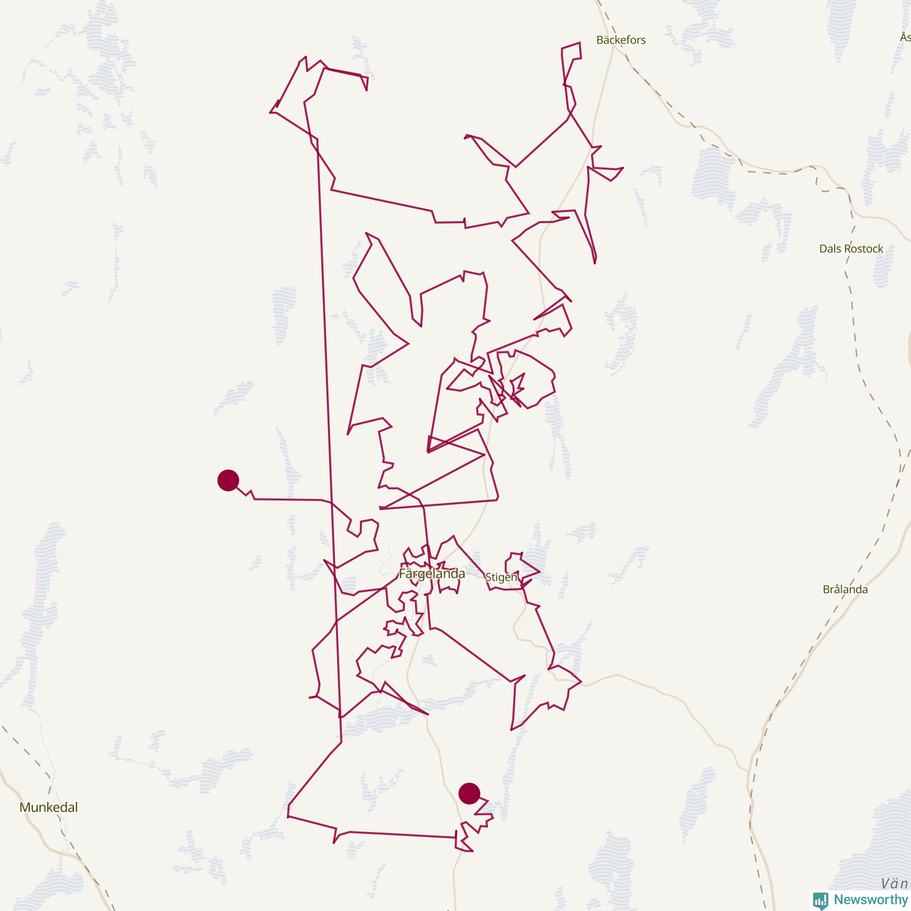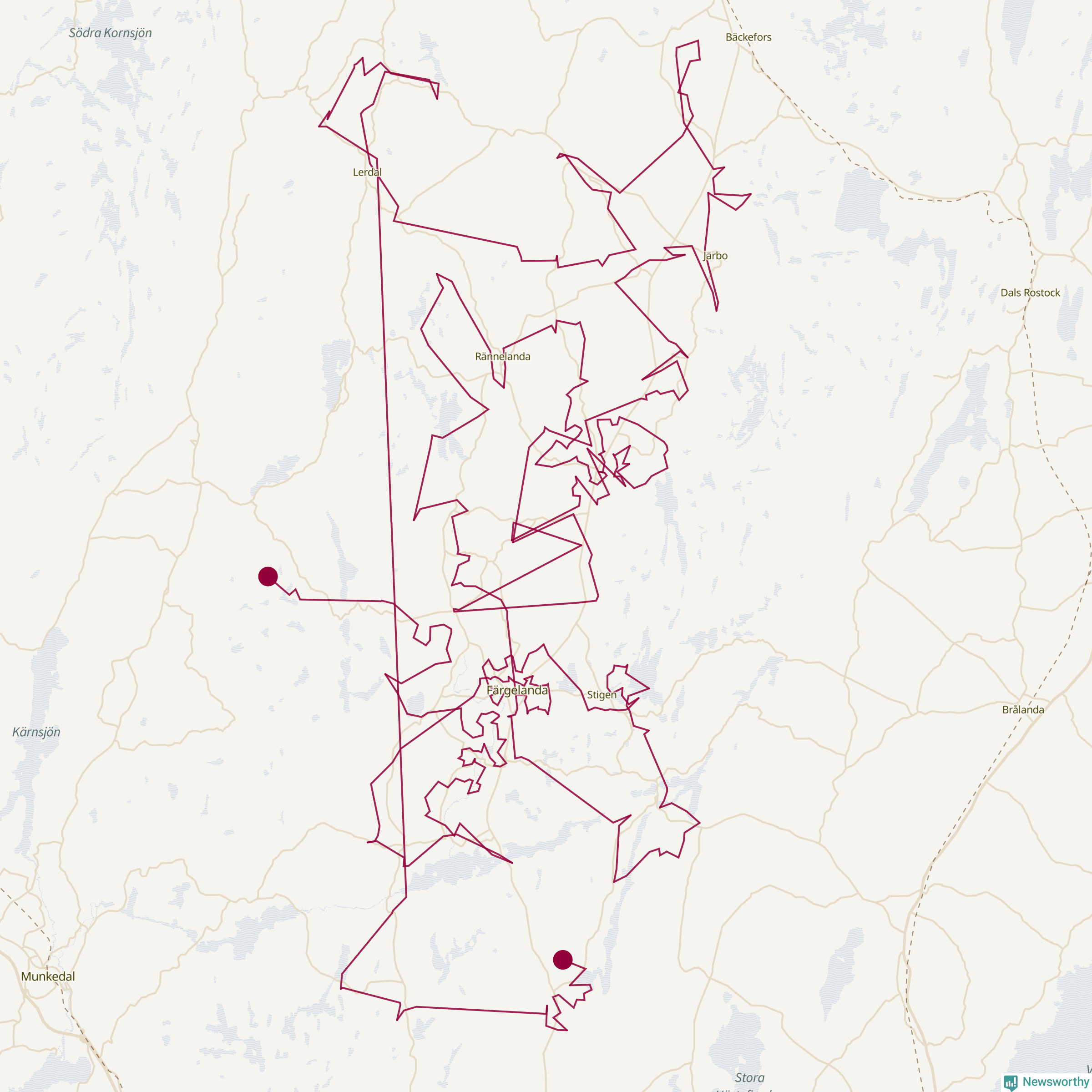 Så här skulle tomtens resa kunna se ut i Färgelanda: