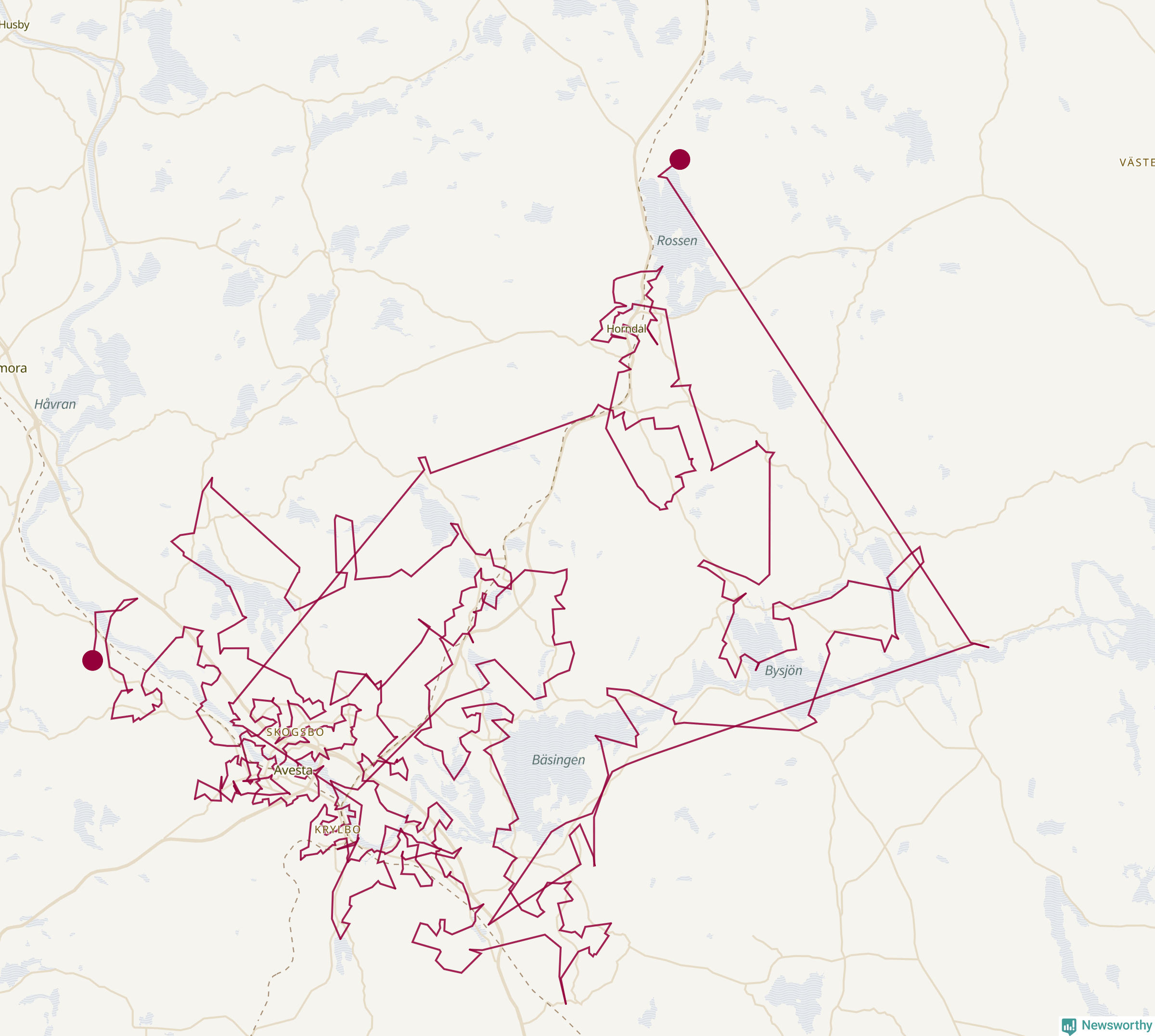 Så här skulle tomtens resa kunna se ut i Avesta: