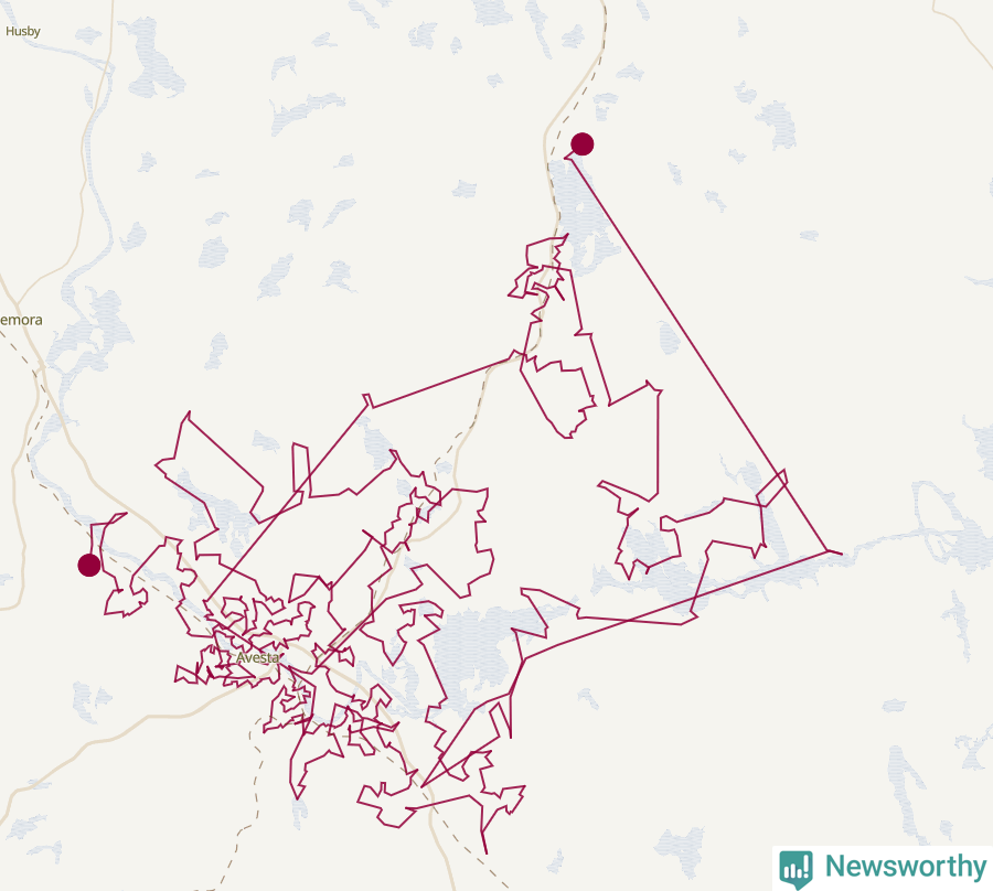Totalt måste tomten avverka en sträcka på 43,7 mil i Avesta kommun. Om vi antar att tomten reser strax under ljudhastigheten för att undvika onödiga ljudbangar i julfriden, så klarar han Avestaresan på ungefär 21 minuter och 14 sekunder.