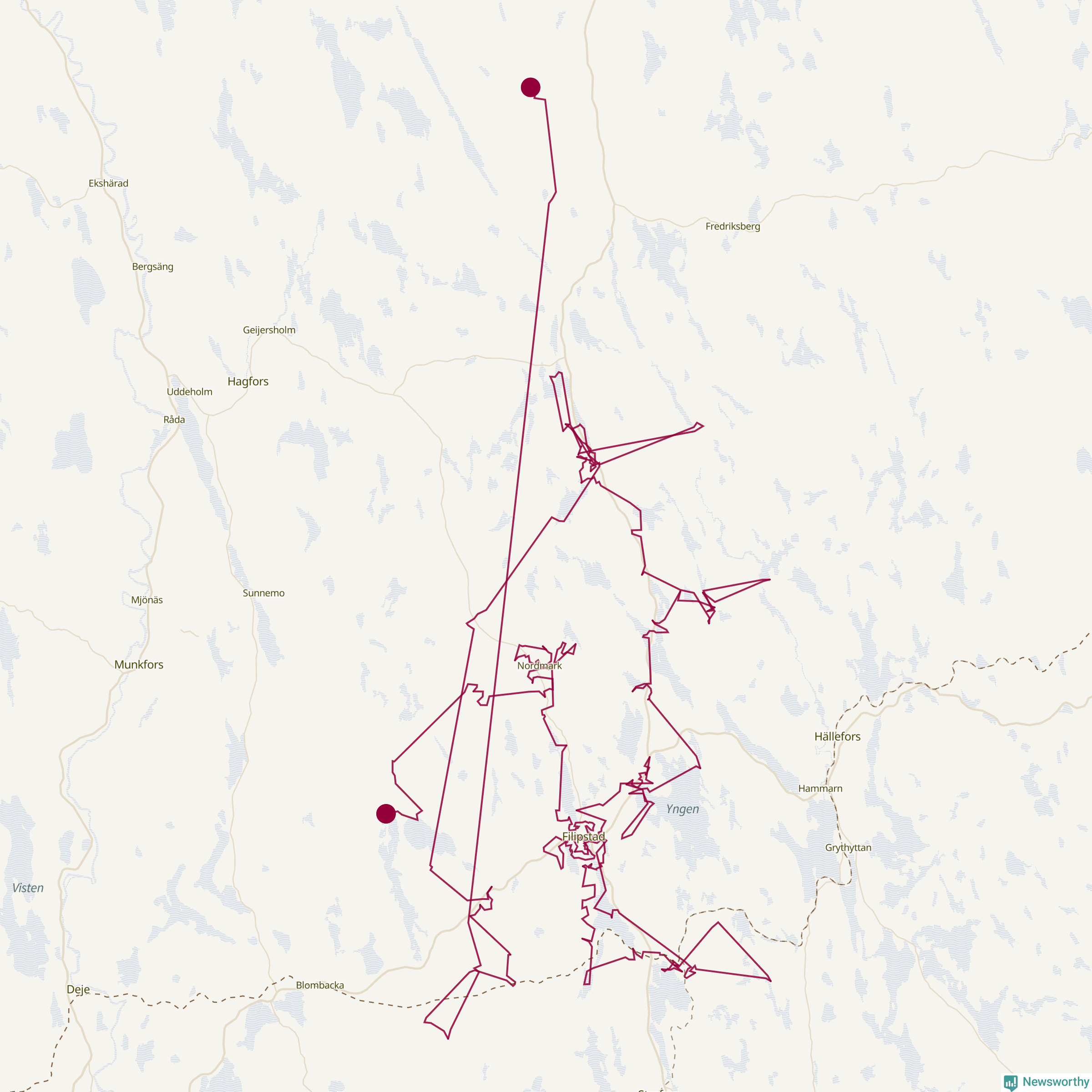 Så här rekommenderar vi att tomten reser för att hinna besöka alla barn i Filipstad.