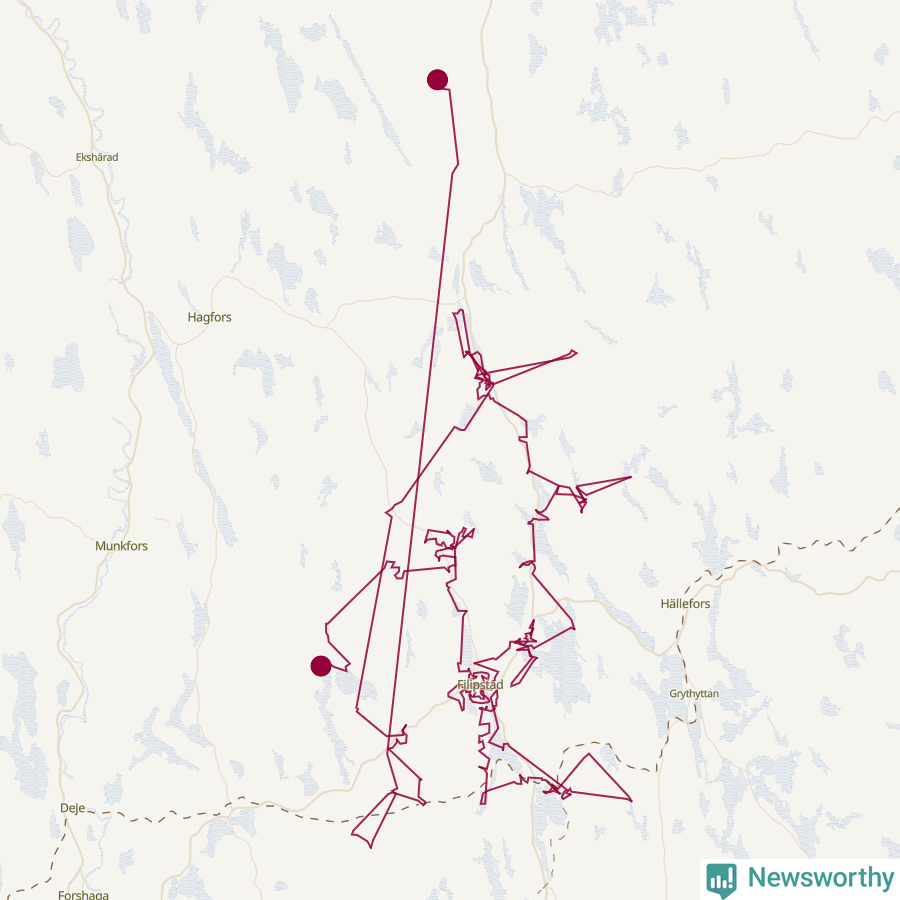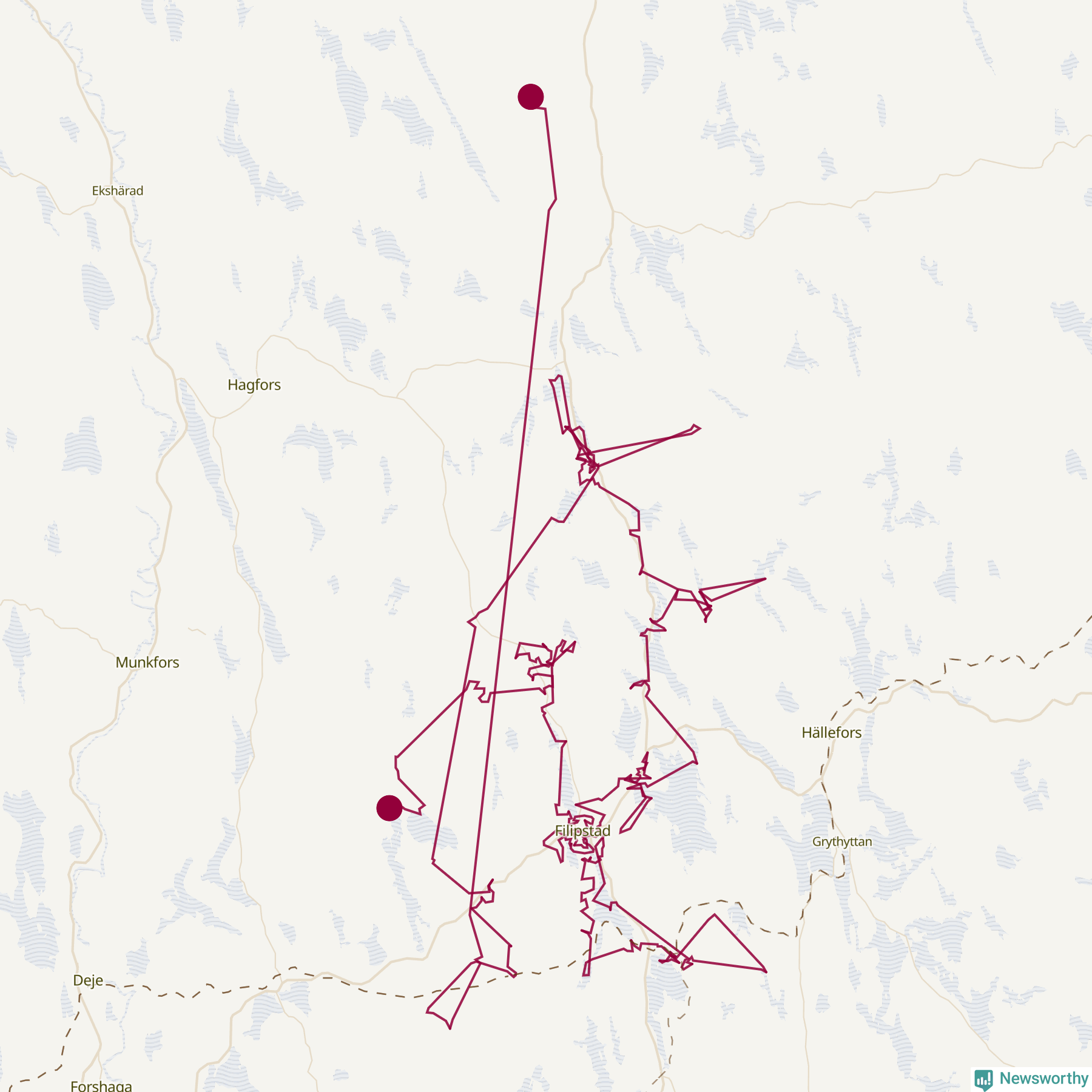 Så här skulle tomtens resa kunna se ut i Filipstad: