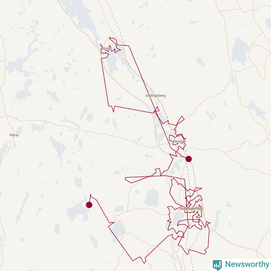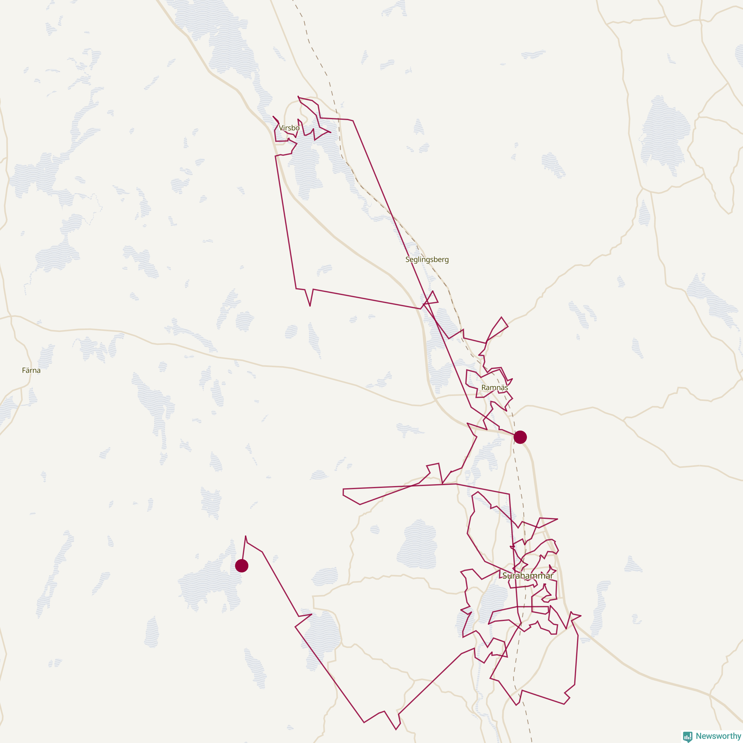 Så här skulle tomtens resa kunna se ut i Surahammar: