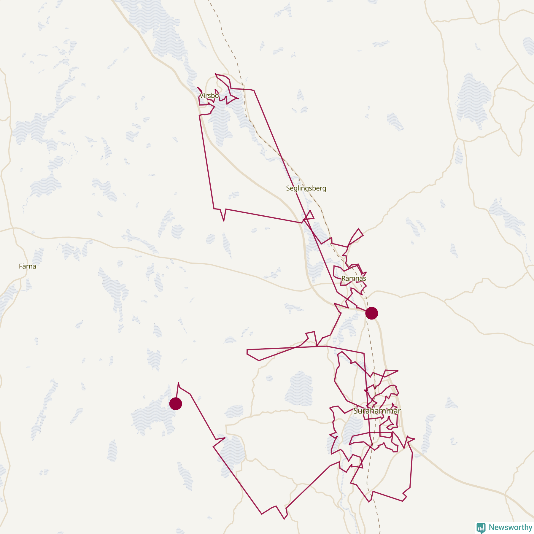 Så här rekommenderar vi att tomten reser för att hinna besöka alla barn i Surahammar.
