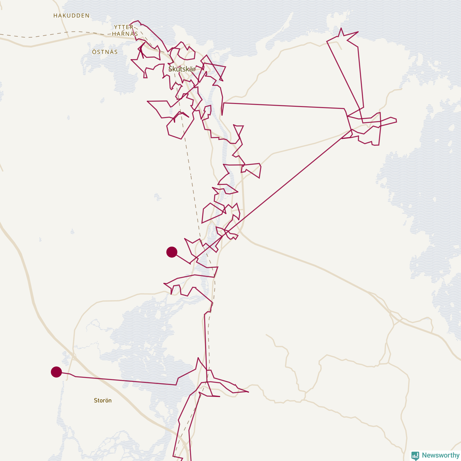 Så här skulle tomtens resa kunna se ut i Älvkarleby: