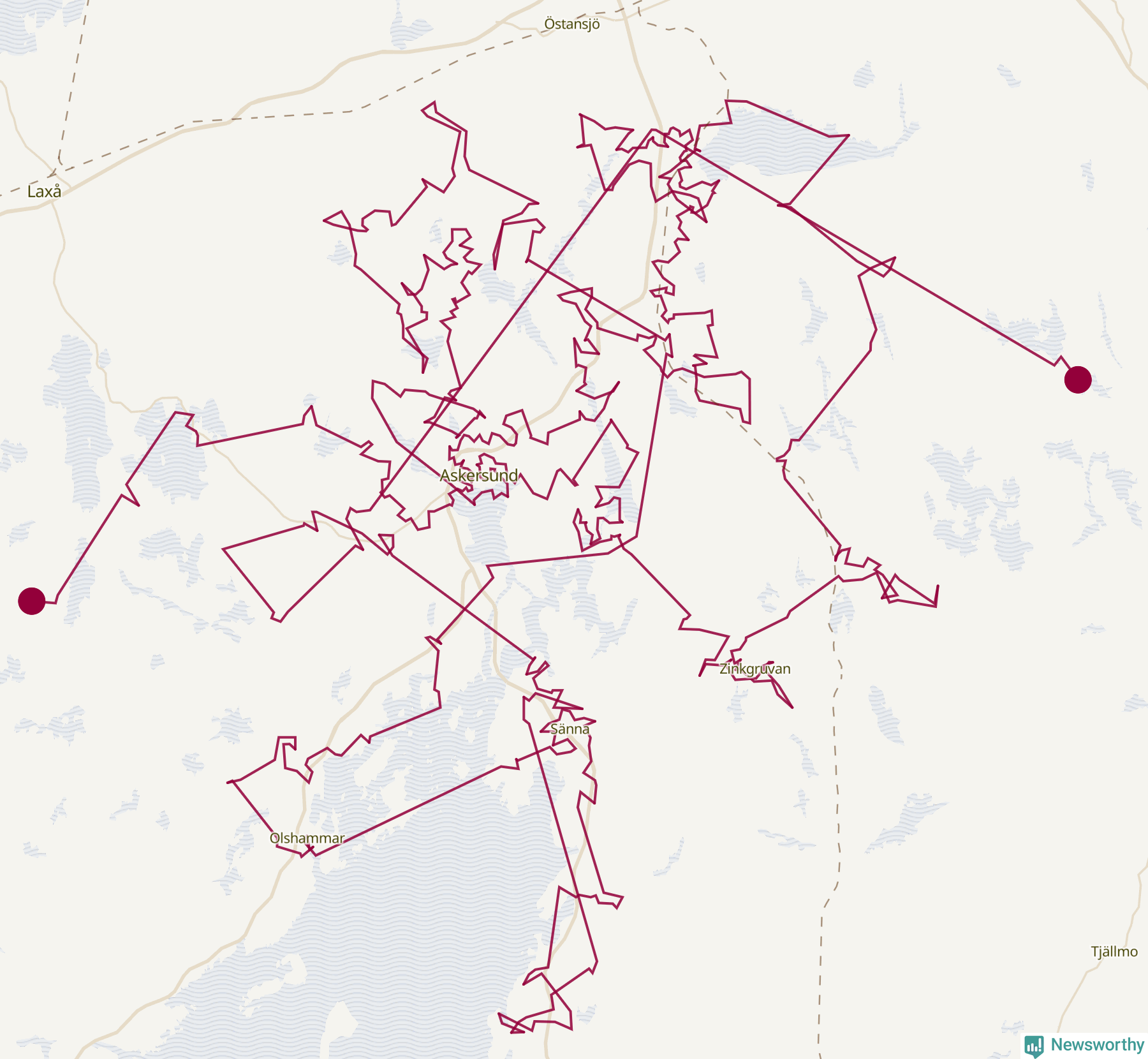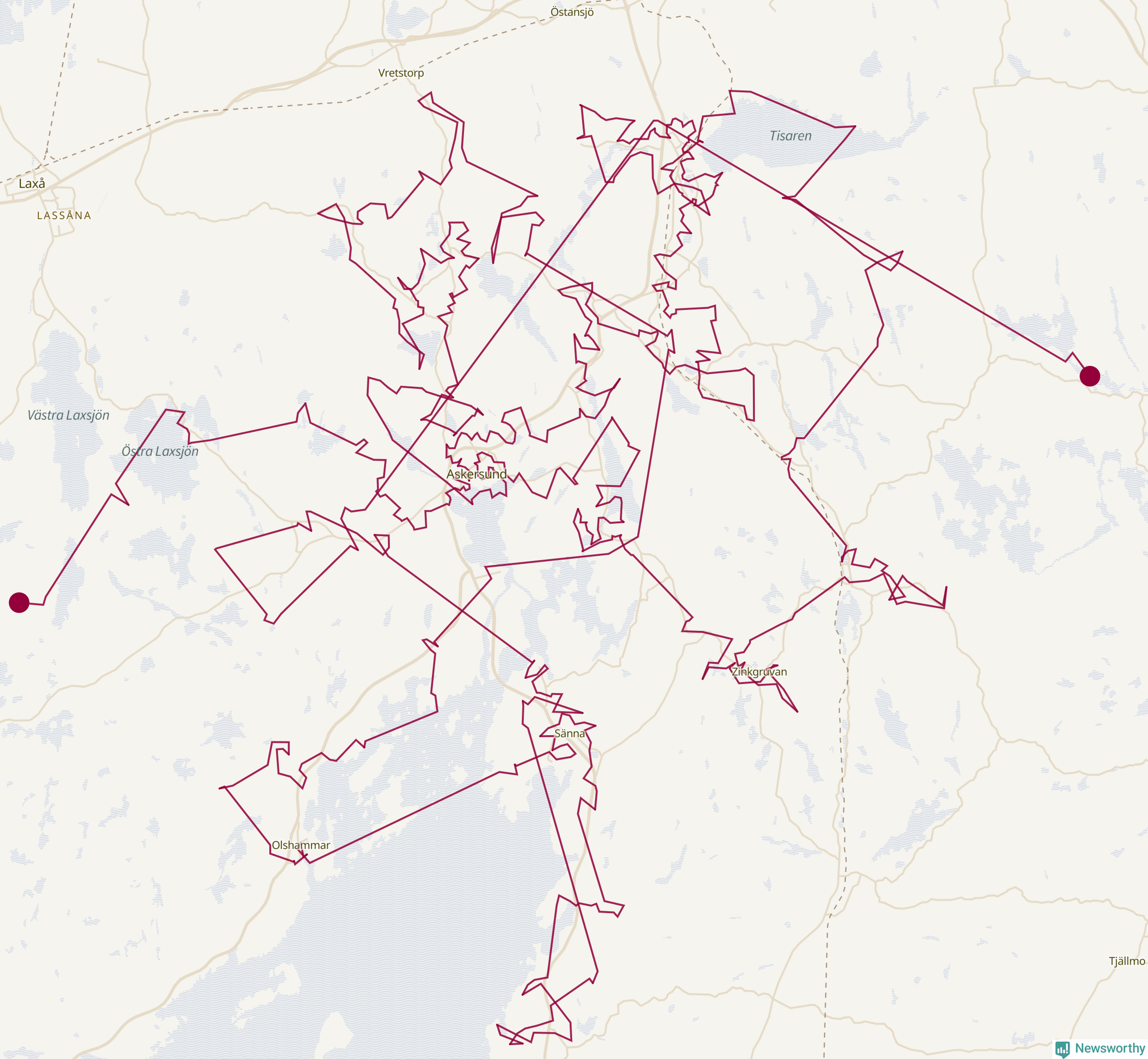 Så här skulle tomtens resa kunna se ut i Askersund: