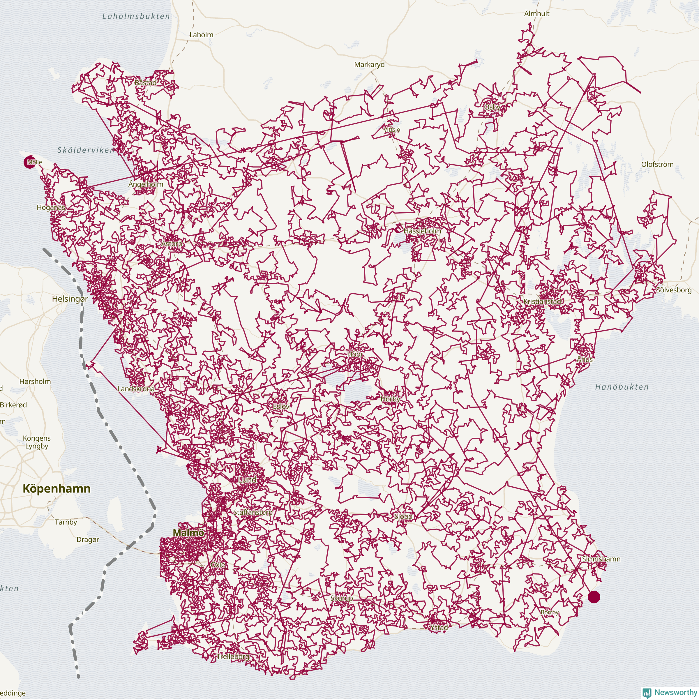 Så här rekommenderar vi att tomten reser för att hinna besöka alla barn i Skåne.