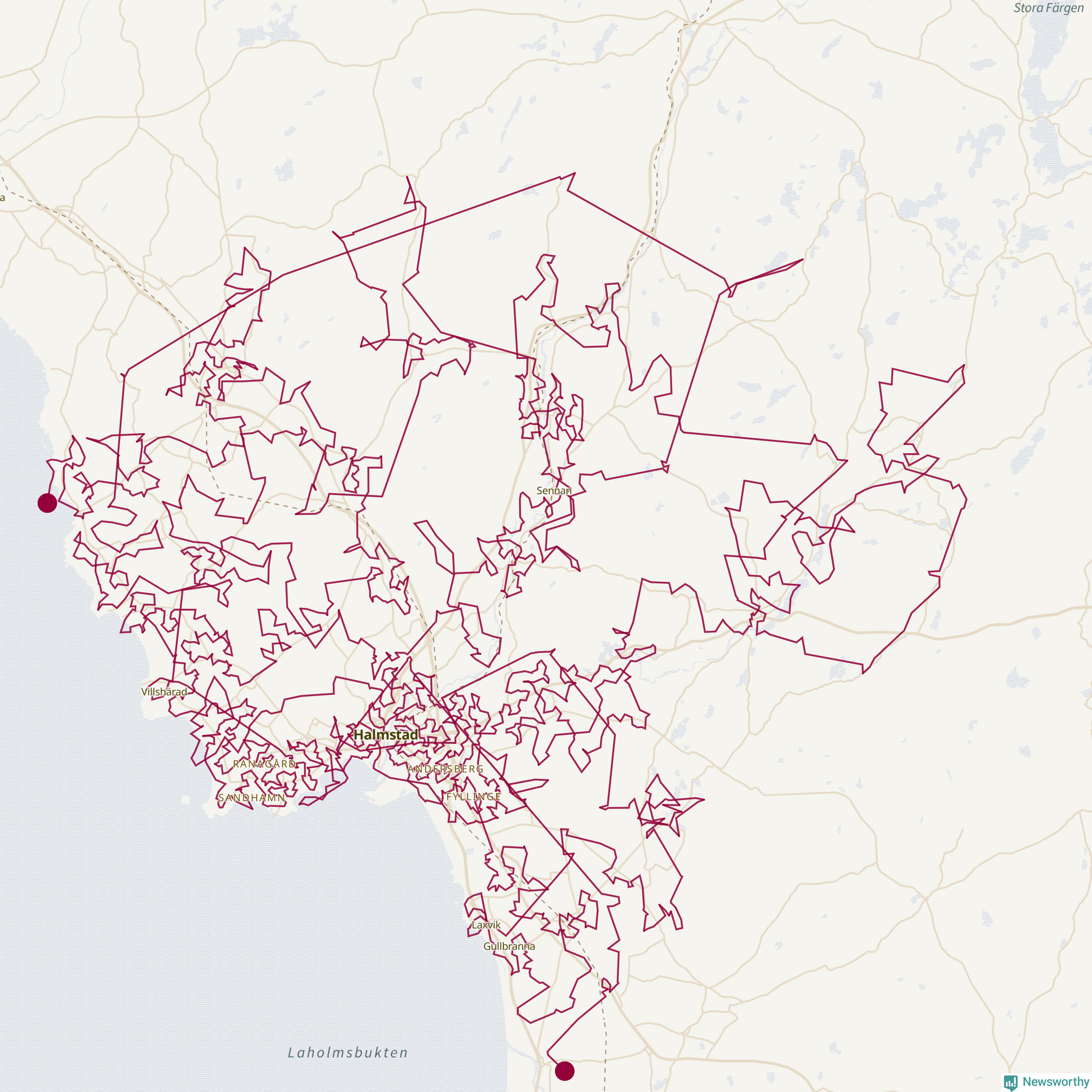 Så här skulle tomtens resa kunna se ut i Halmstad:
