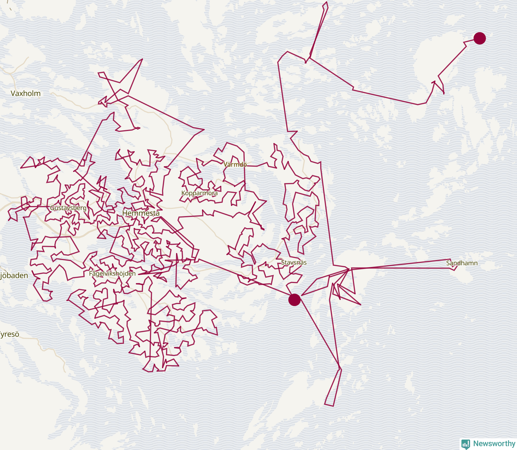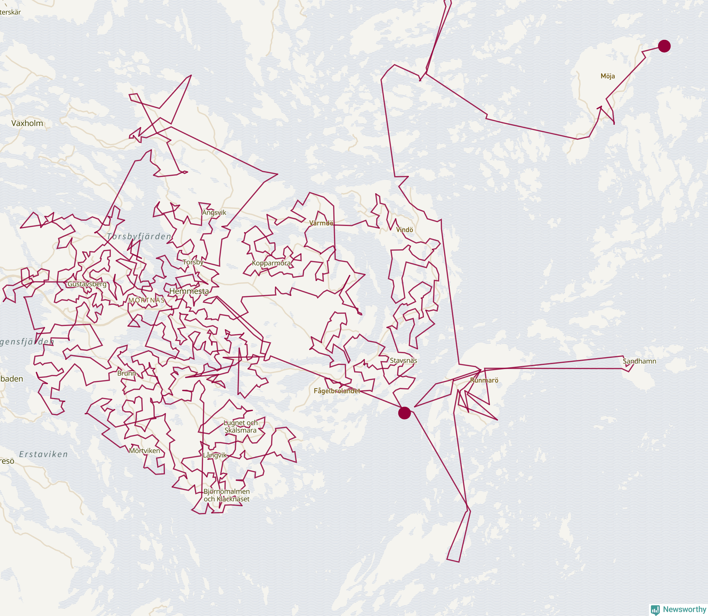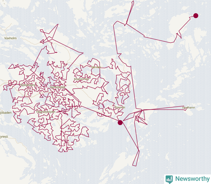 Så här skulle tomtens resa kunna se ut i Värmdö: