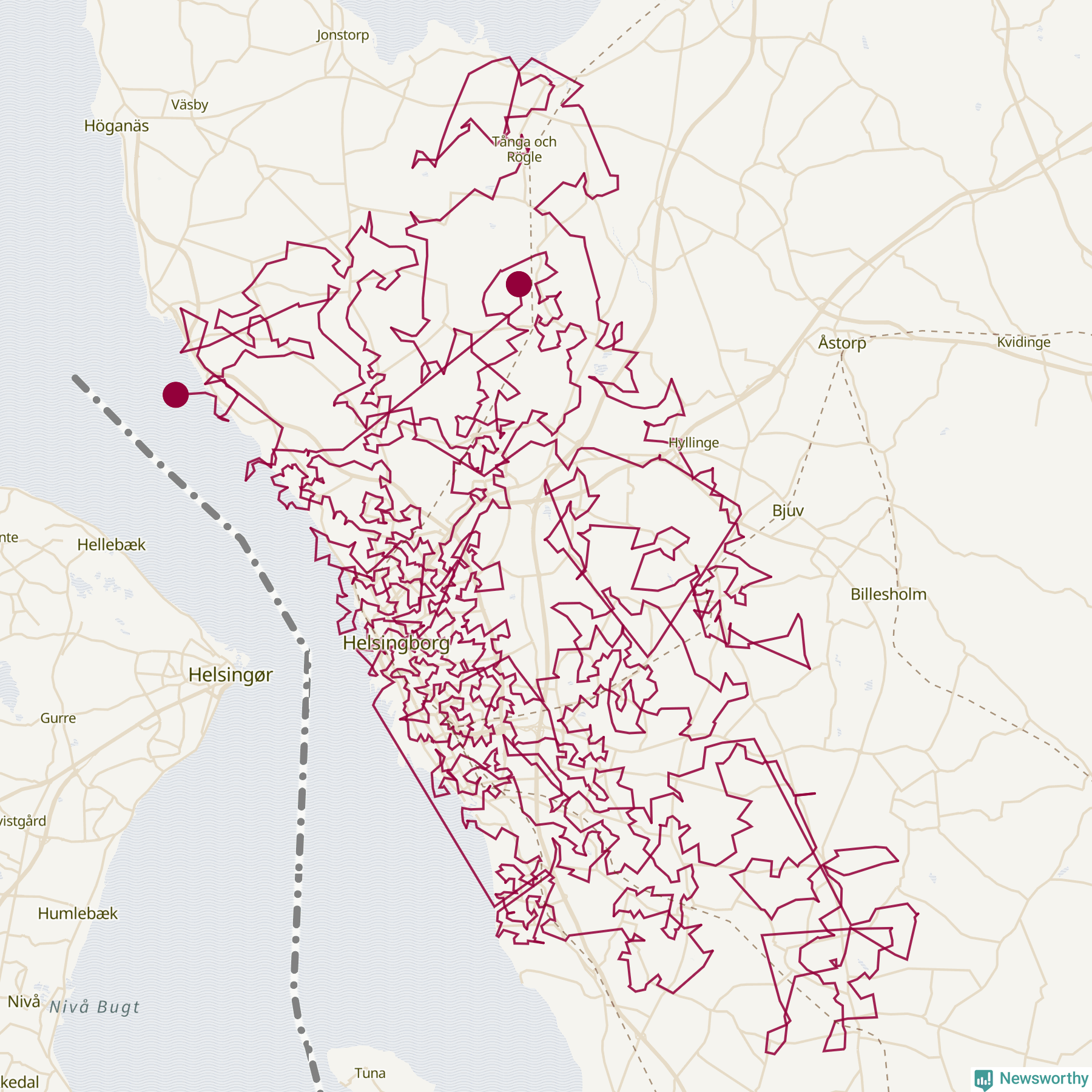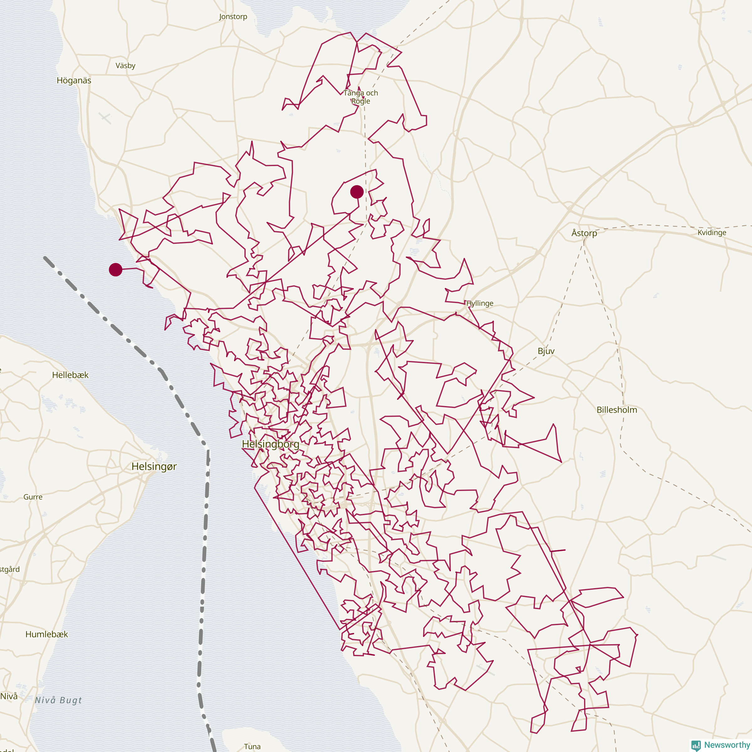 Så här skulle tomtens resa kunna se ut i Helsingborg: