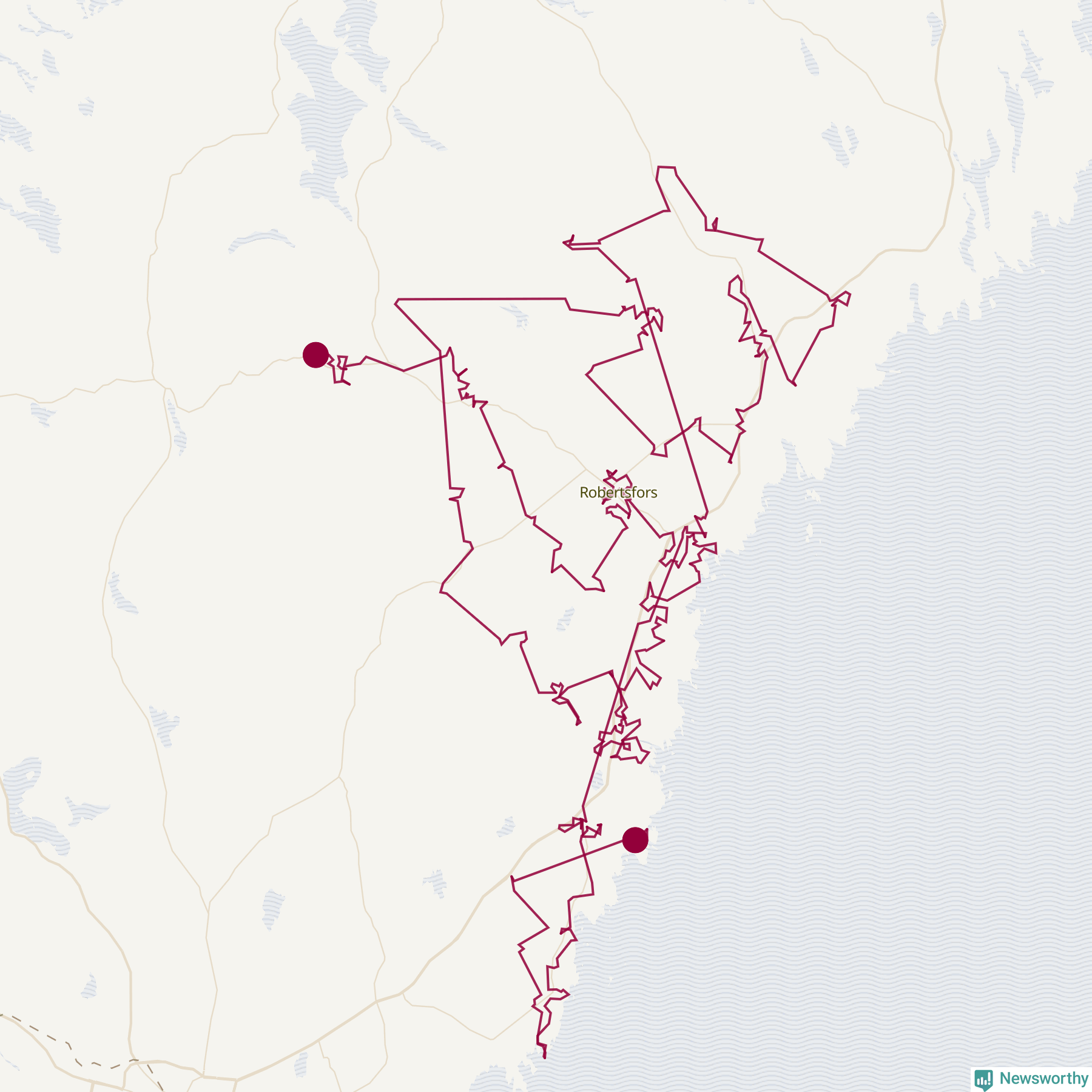Totalt måste tomten avverka en sträcka på 39,9 mil i Robertsfors kommun. I relation till antalet barn i kommunen gör det resan till en av de kämpigaste i landet. Eftersom barnen är utspridda över nejden blir resan per barn lång. Om vi antar att tomten reser strax under ljudhastigheten för att undvika onödiga ljudbangar i julfriden, så behöver han ungefär 19 minuter och 24 sekunder för Robertsforsresan.
