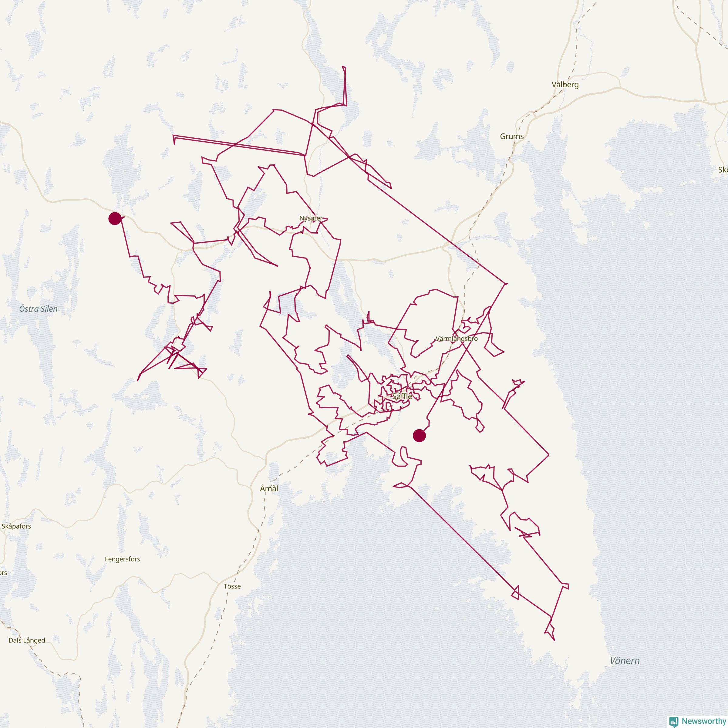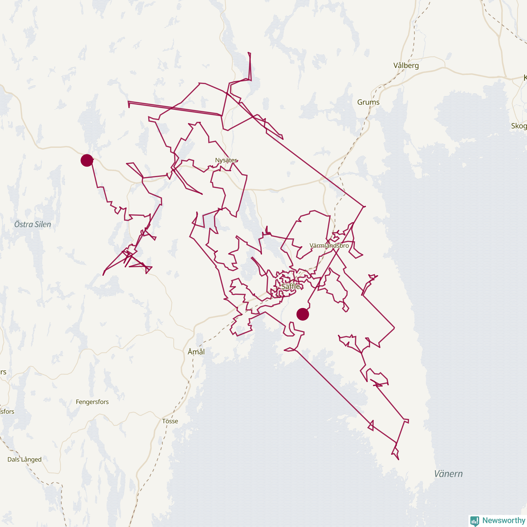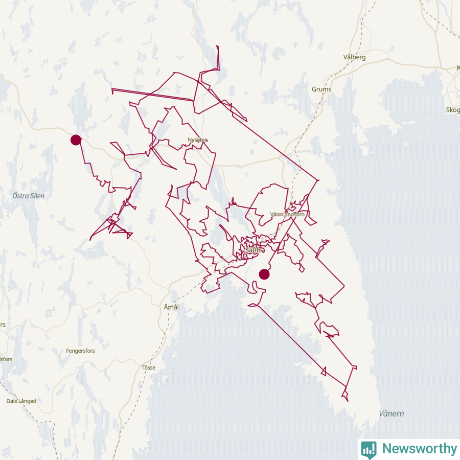 Så här skulle tomtens resa kunna se ut i Säffle: