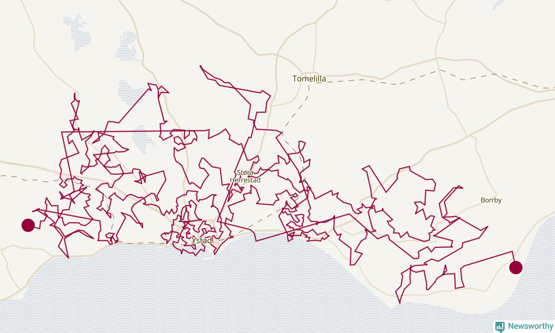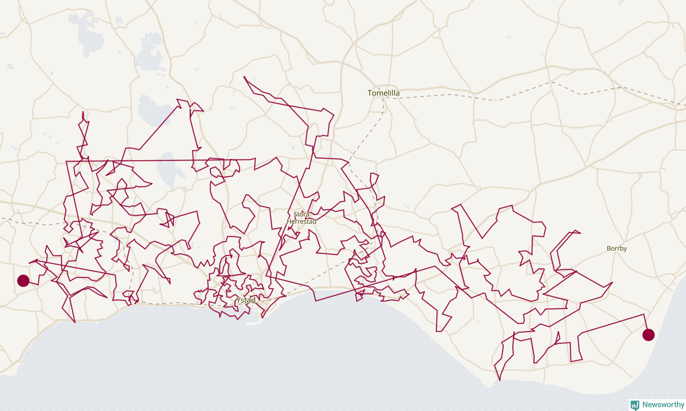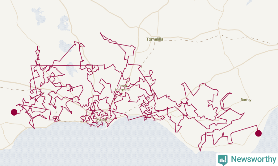 Så här skulle tomtens resa kunna se ut i Ystad: