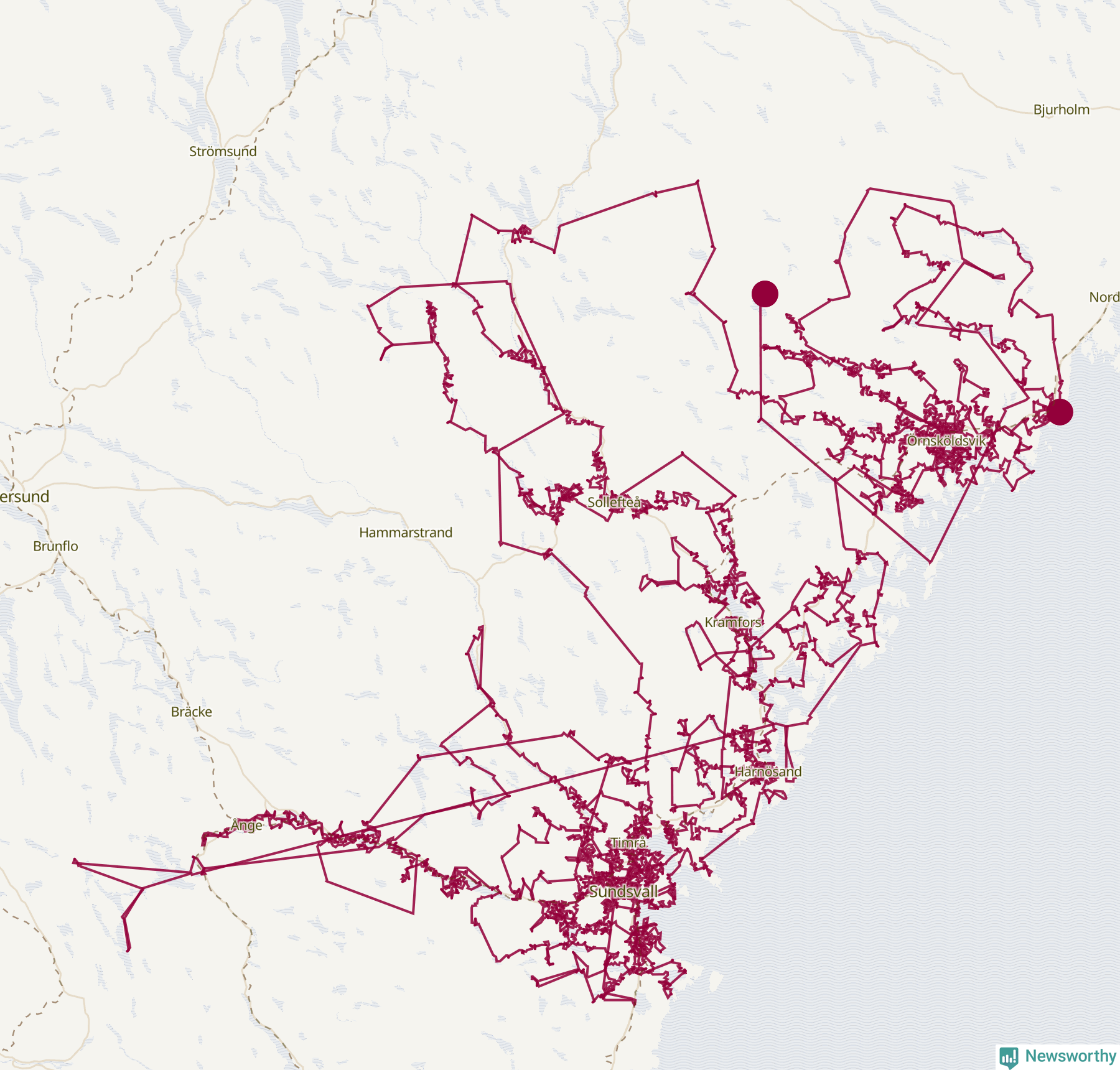 Så här skulle tomtens resa kunna se ut i Västernorrland: