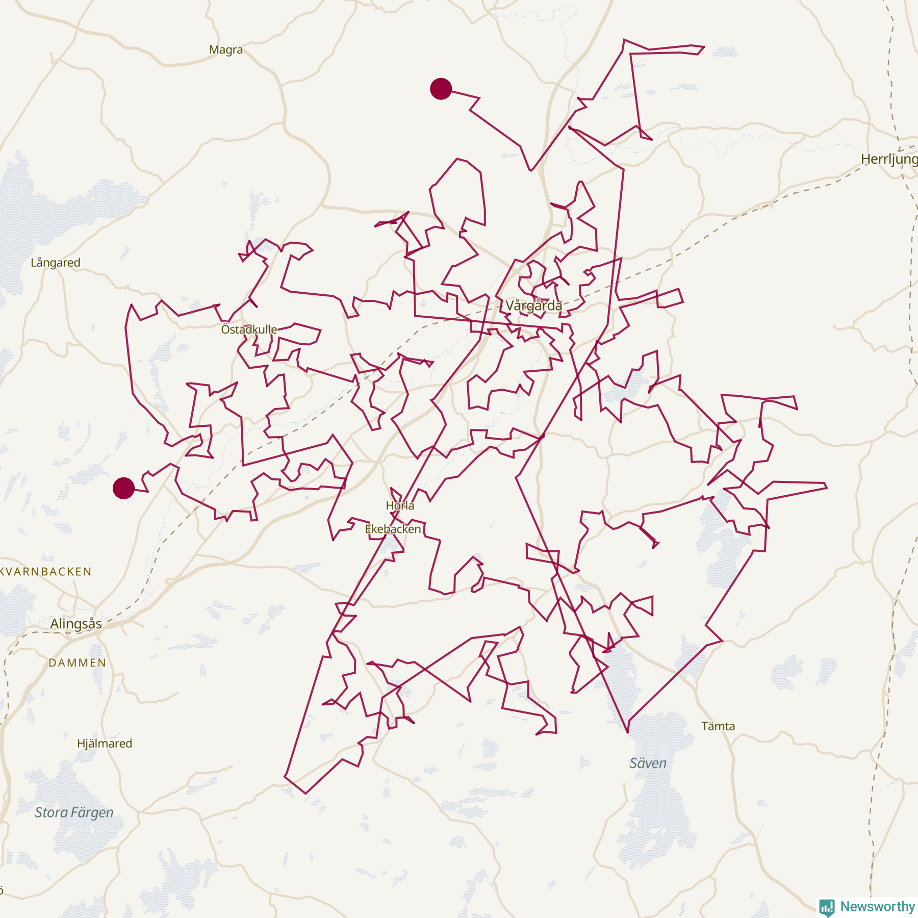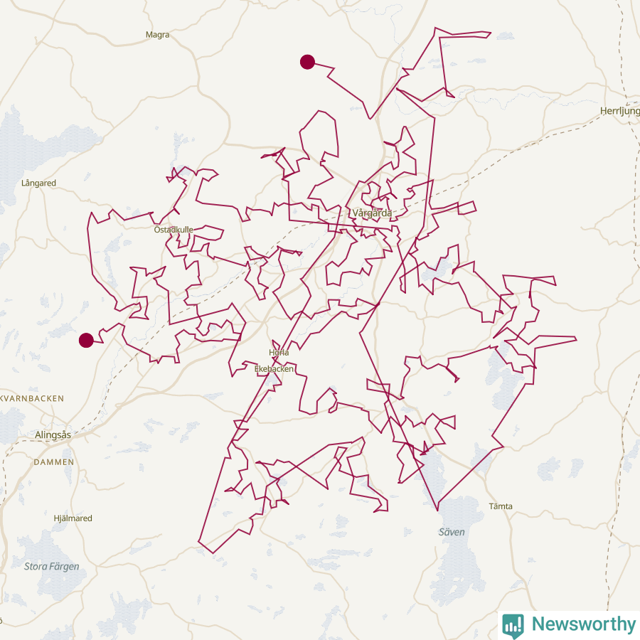 Så här skulle tomtens resa kunna se ut i Vårgårda: