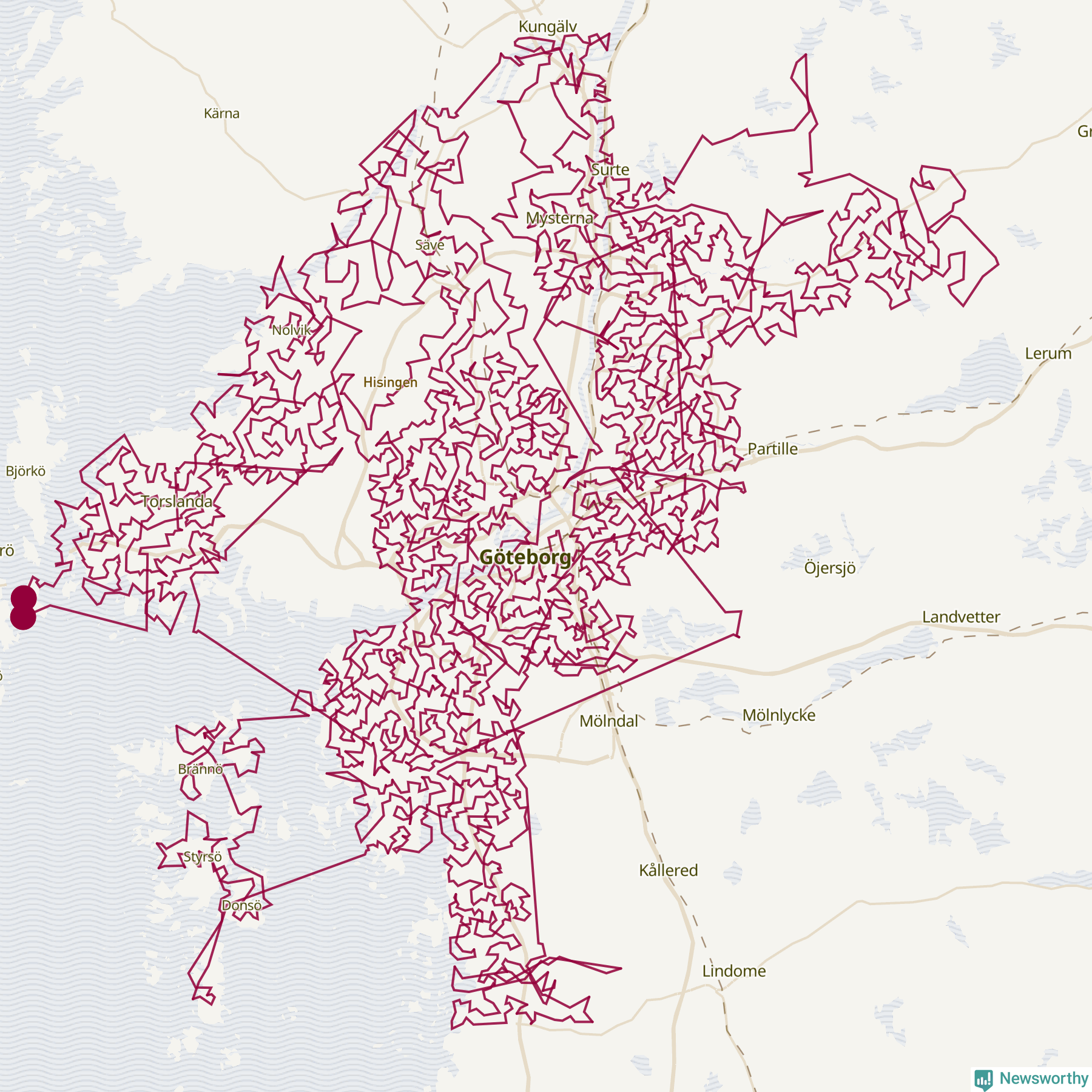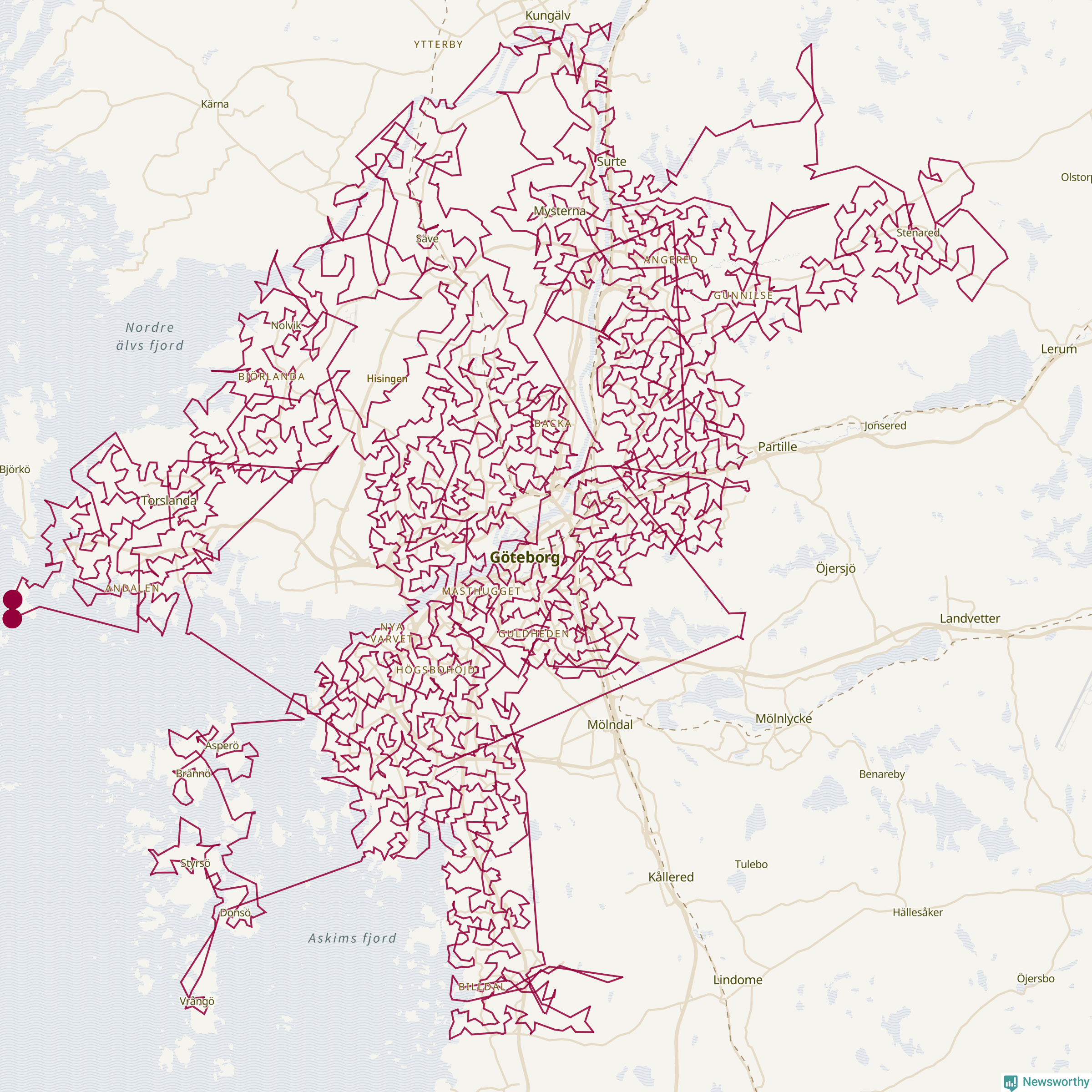 Så här skulle tomtens resa kunna se ut i Göteborg: