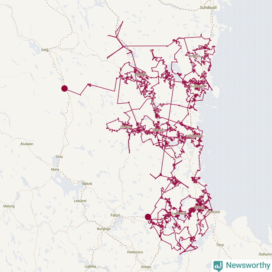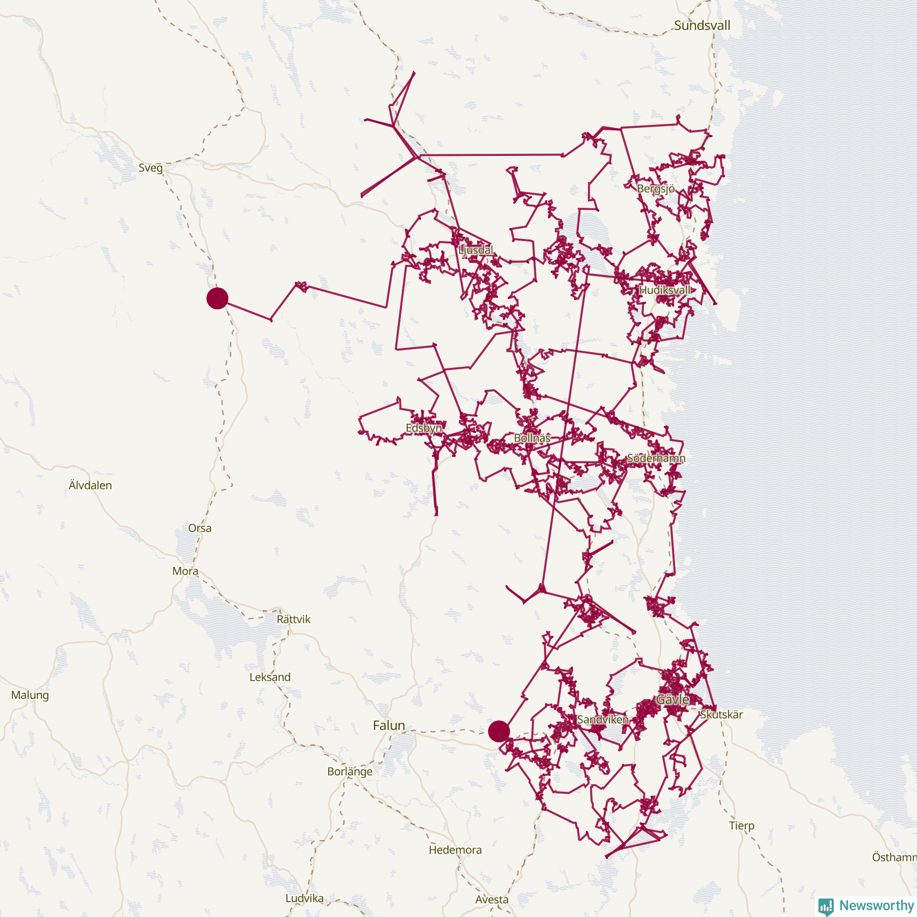 Karta: Här är tomtens optimala rutt i Gävleborg