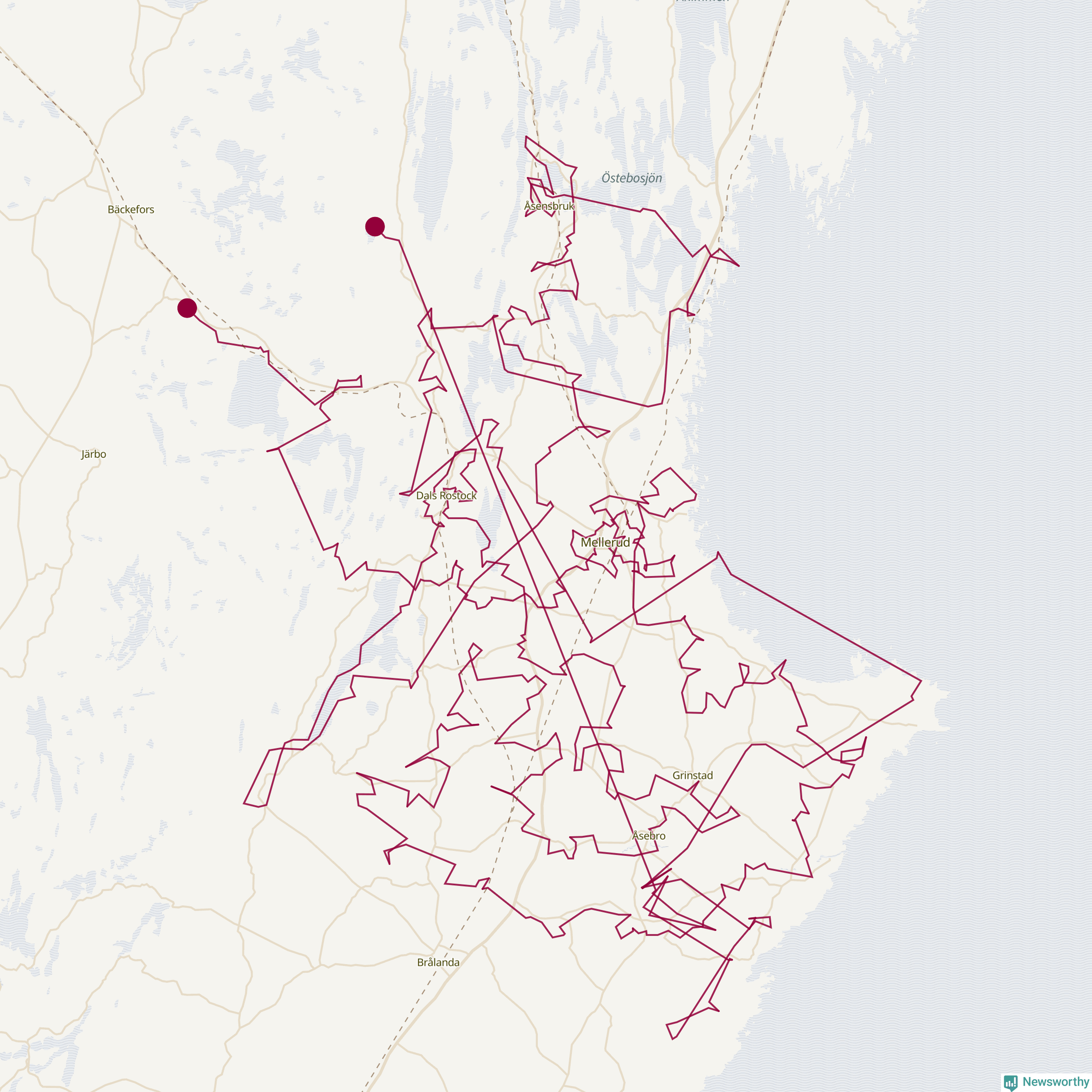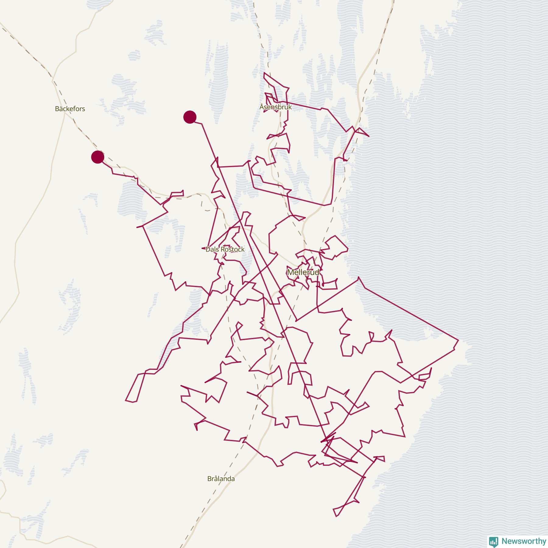 Så här skulle tomtens resa kunna se ut i Mellerud: