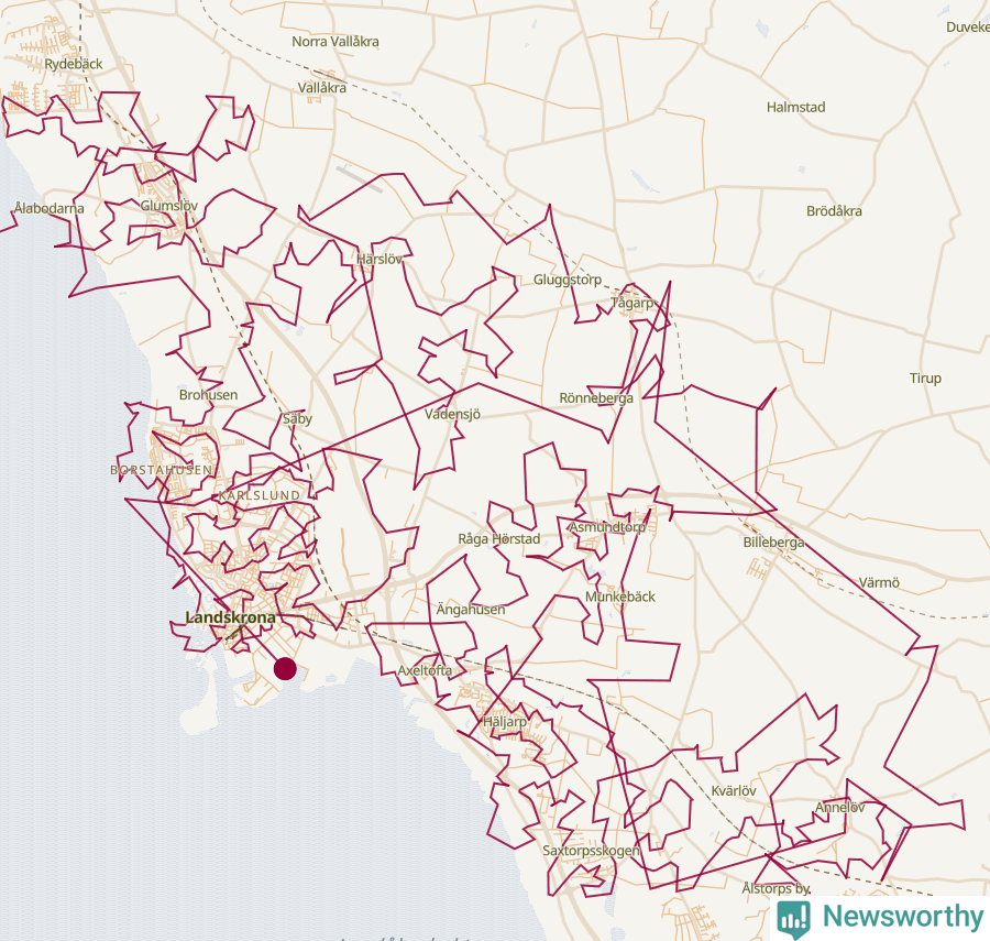 Så här skulle tomtens resa kunna se ut i Landskrona: