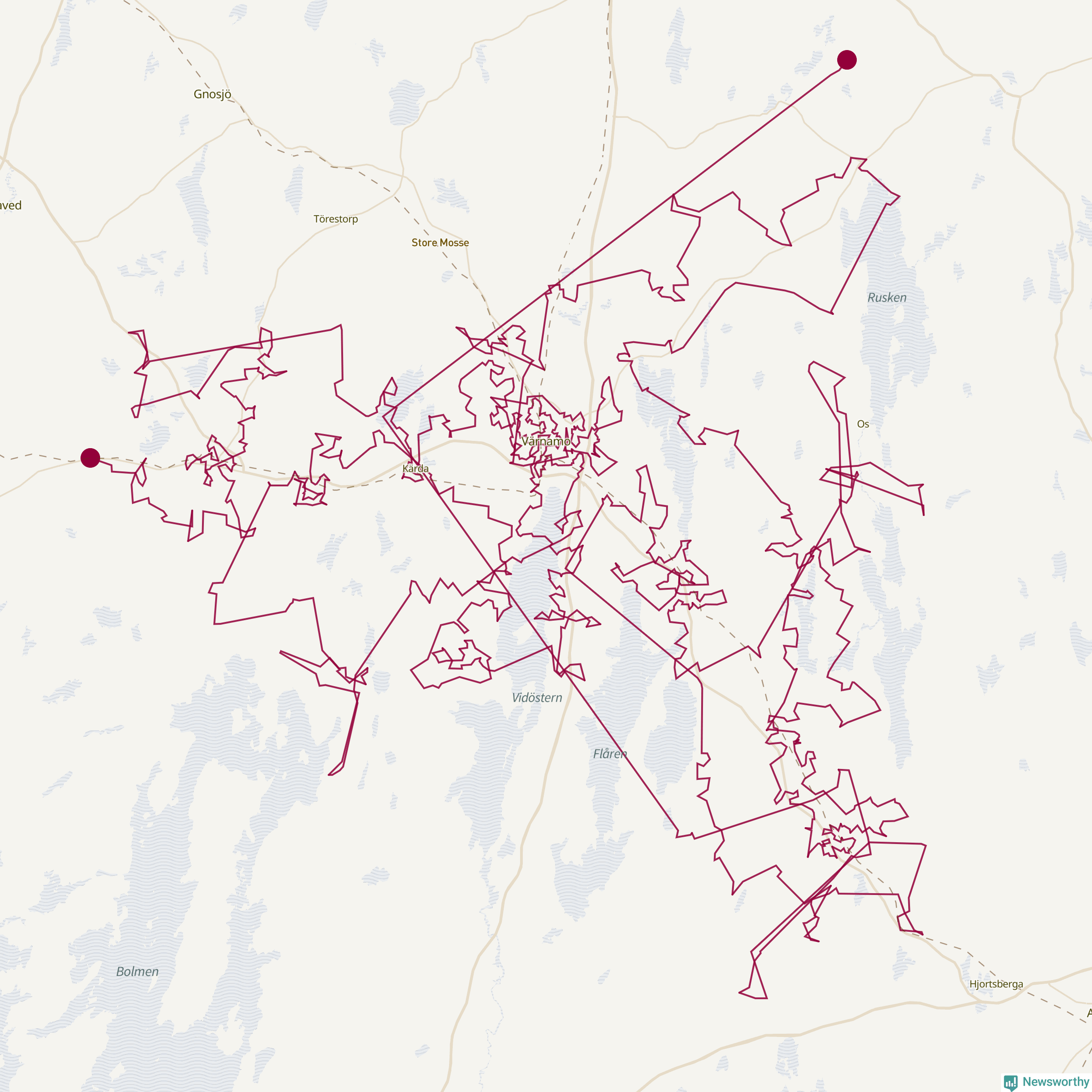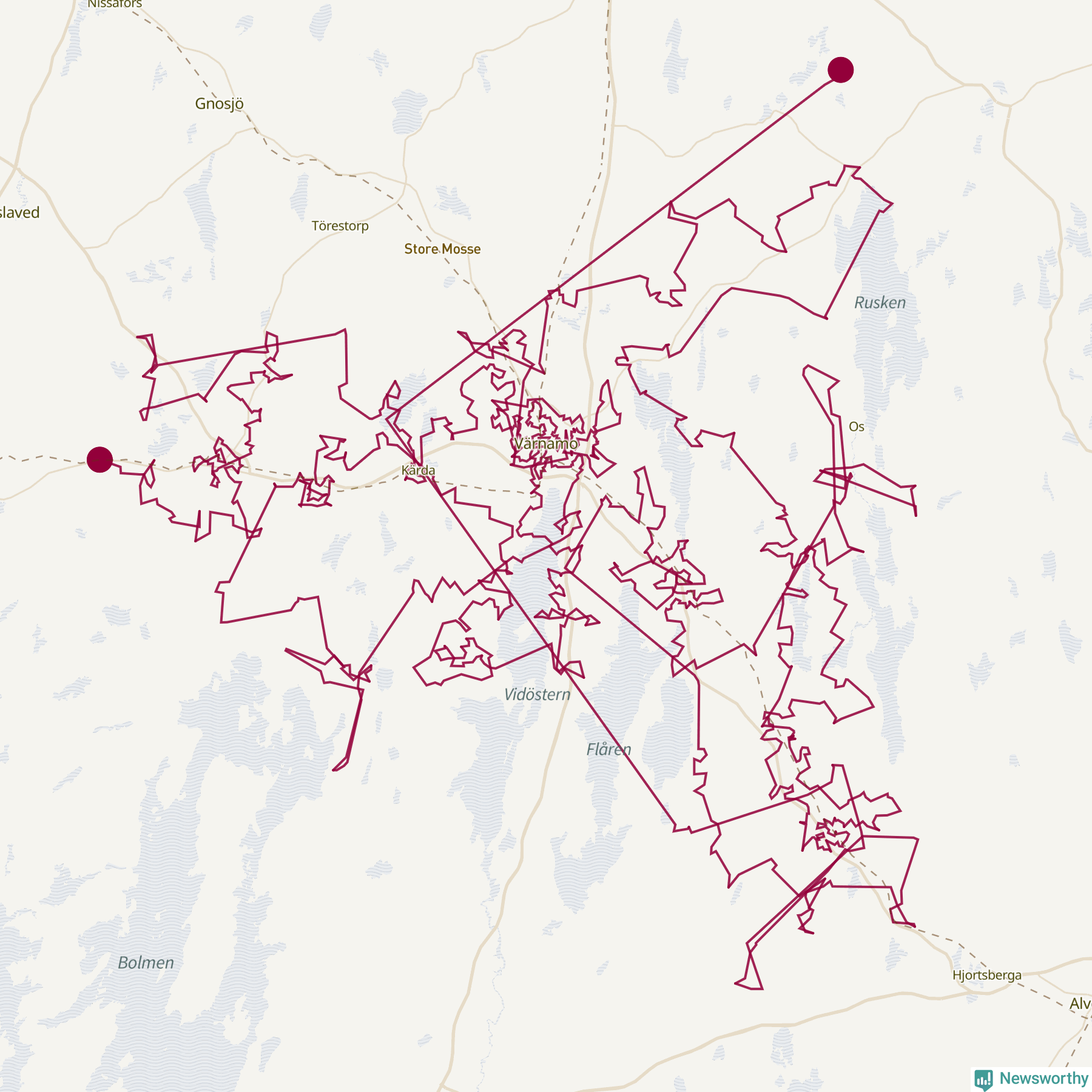 Så här skulle tomtens resa kunna se ut i Värnamo: