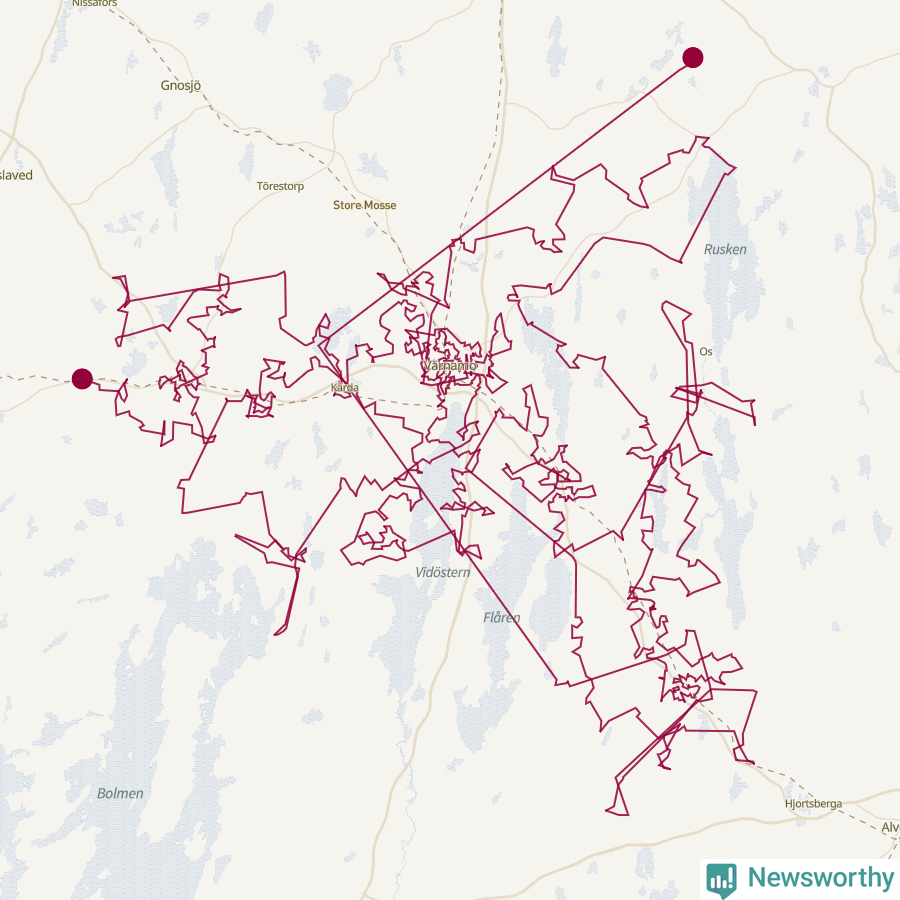 Totalt måste tomten avverka en sträcka på 87 mil i Värnamo kommun. Det gör Värnamoresan långt, jämfört med andra kommuner i landet. Om vi antar att tomten reser strax under ljudhastigheten för att undvika onödiga ljudbangar i julfriden, så behöver han ändå ungefär 42 minuter och 16 sekunder för Värnamoresan.