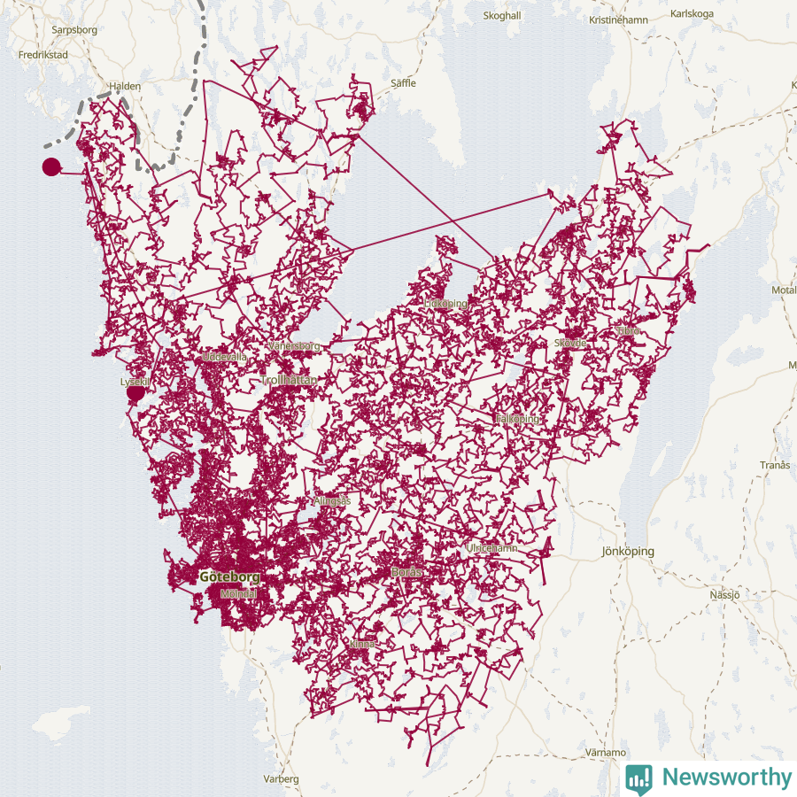 Så här skulle tomtens resa kunna se ut i Västra Götaland: