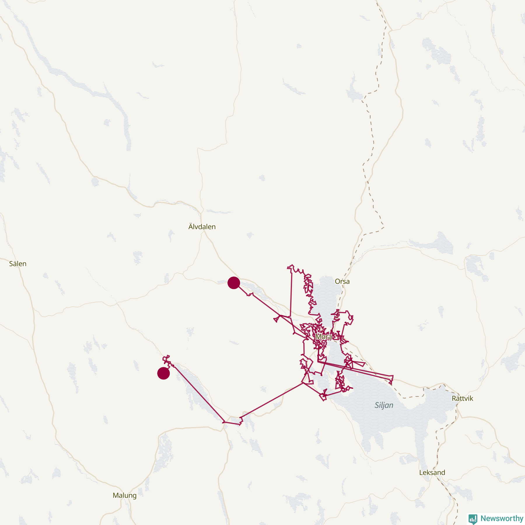 Så här skulle tomtens resa kunna se ut i Mora: